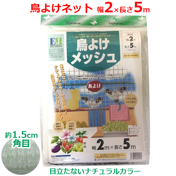 鳥よけメッシュ 防鳥ネット 鳥よけネット 2m×5m ナチュラル 白系 15mm角目 ハトよけ 対策 ベランダ 家庭菜園