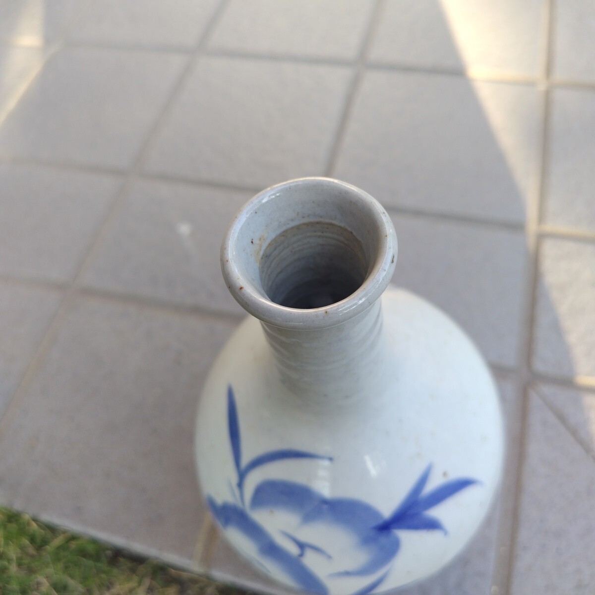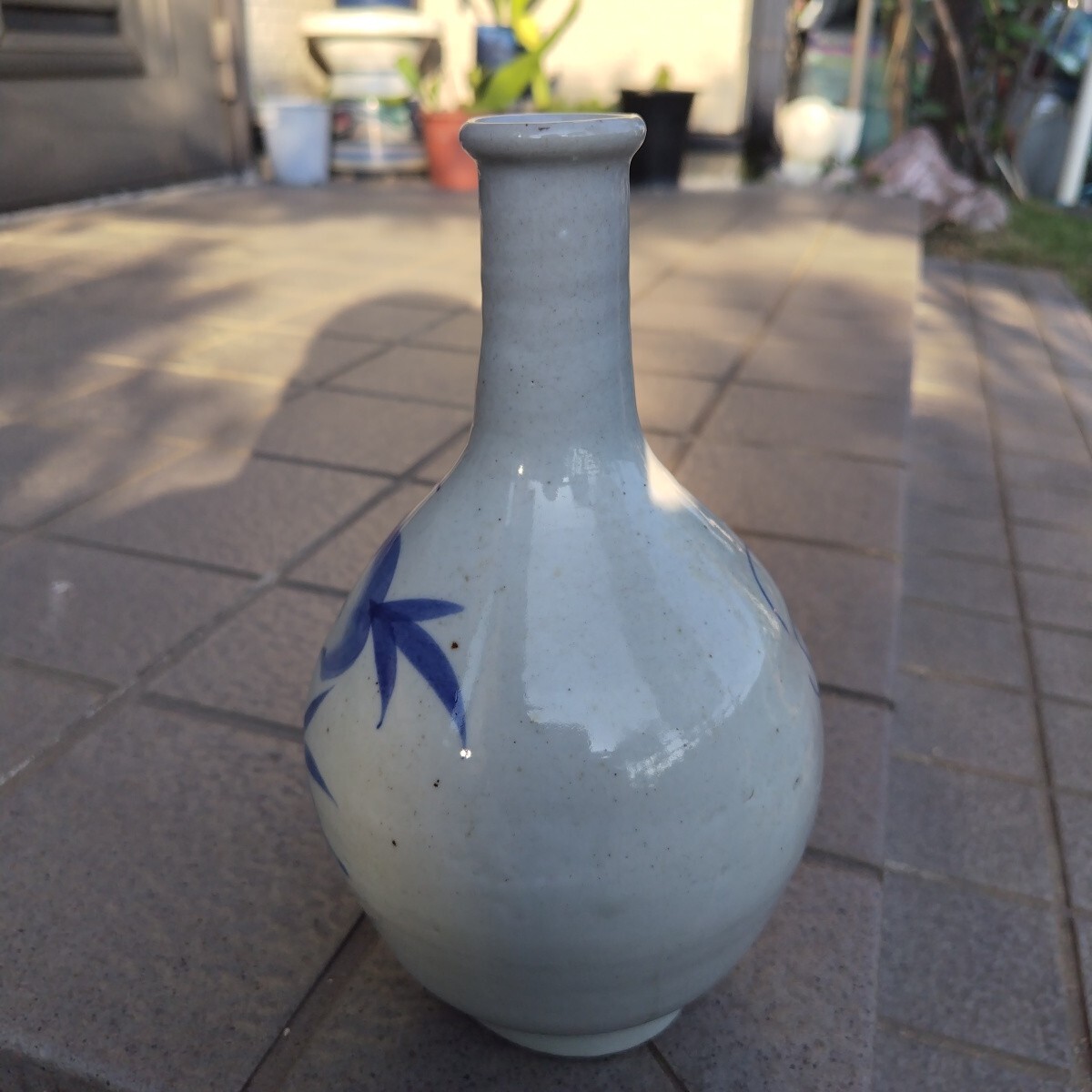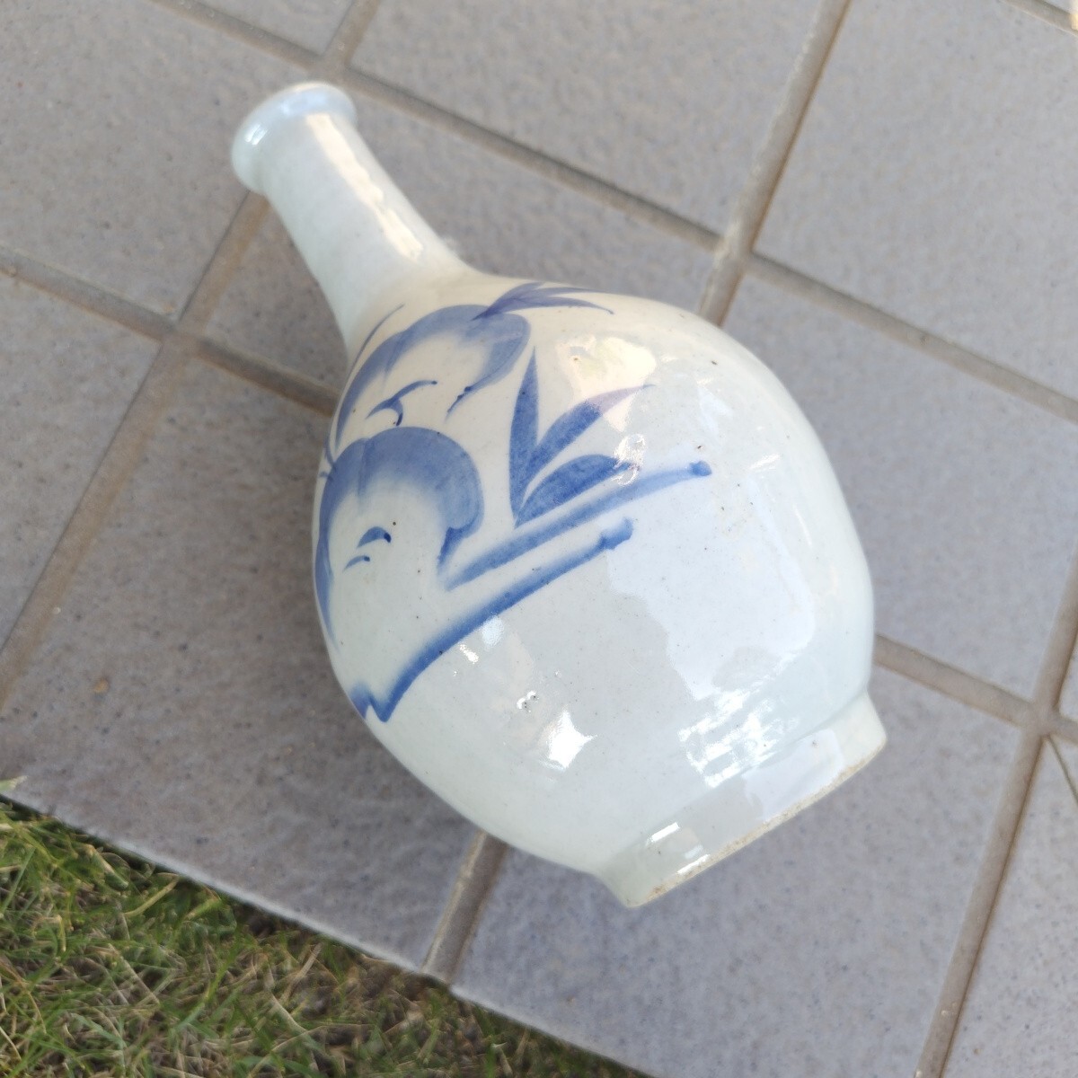 青い花柄が描かれた陶磁器製の花瓶又は徳利
