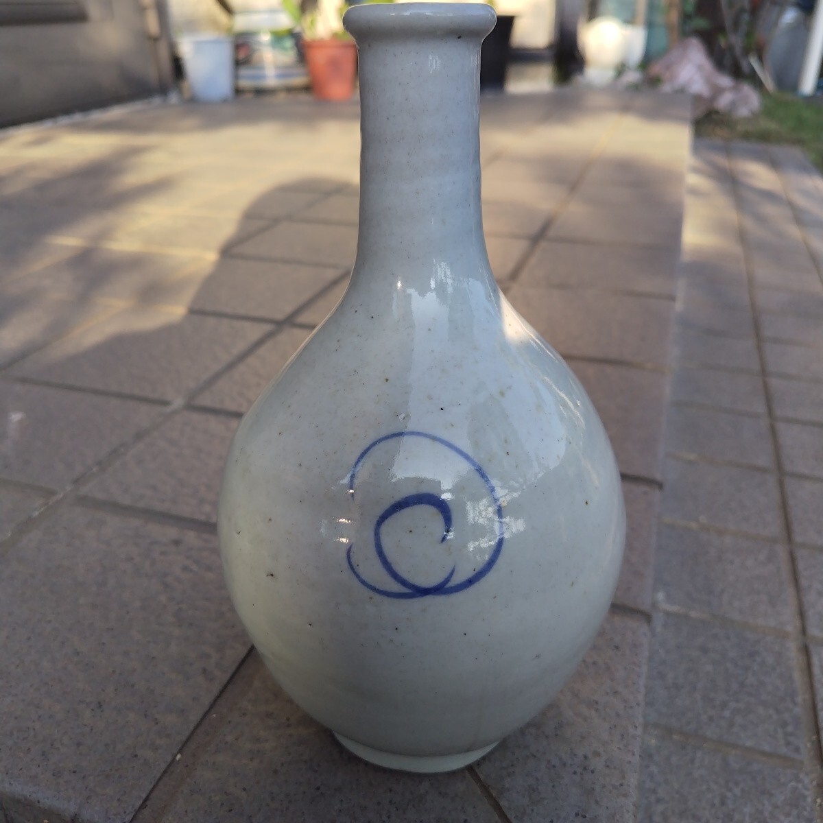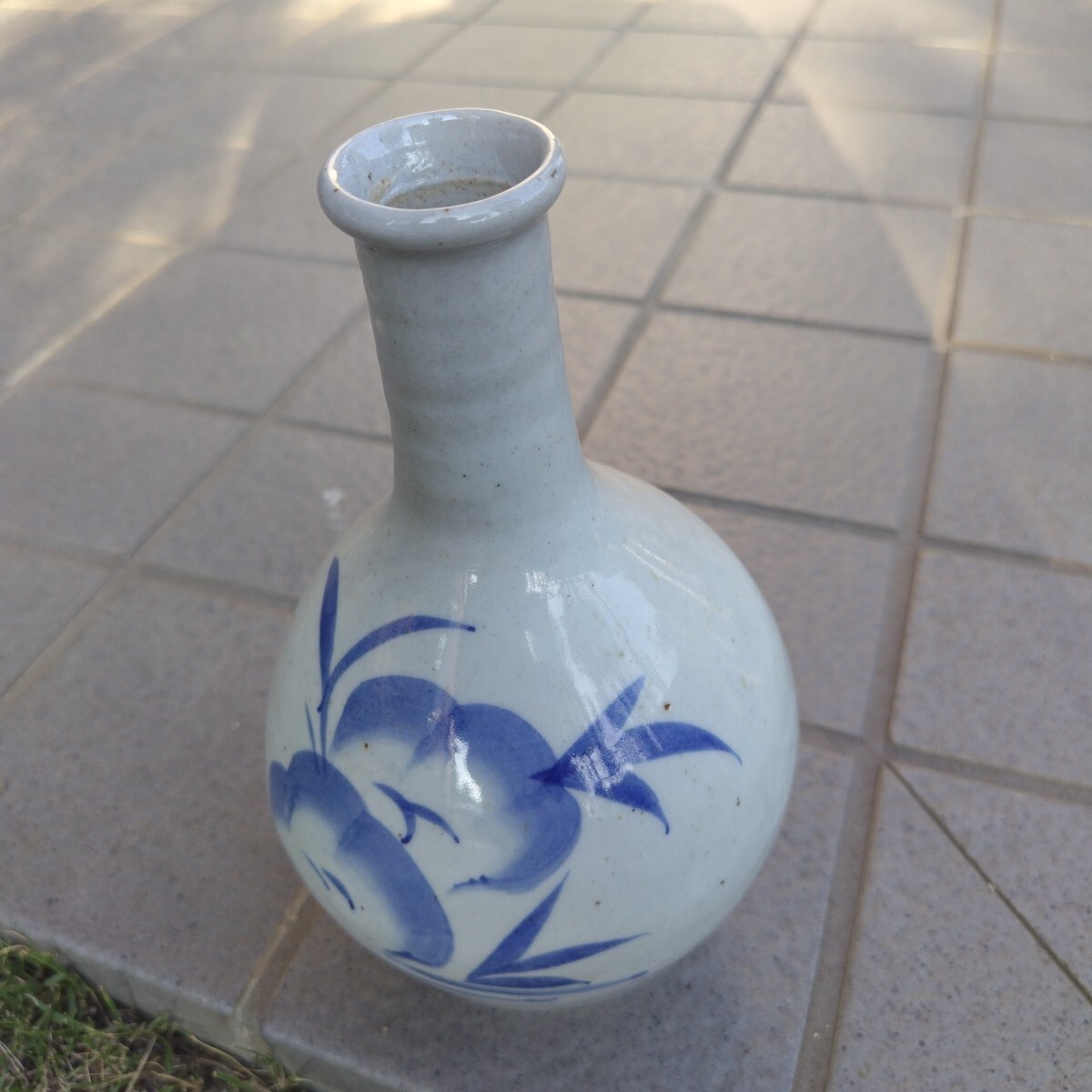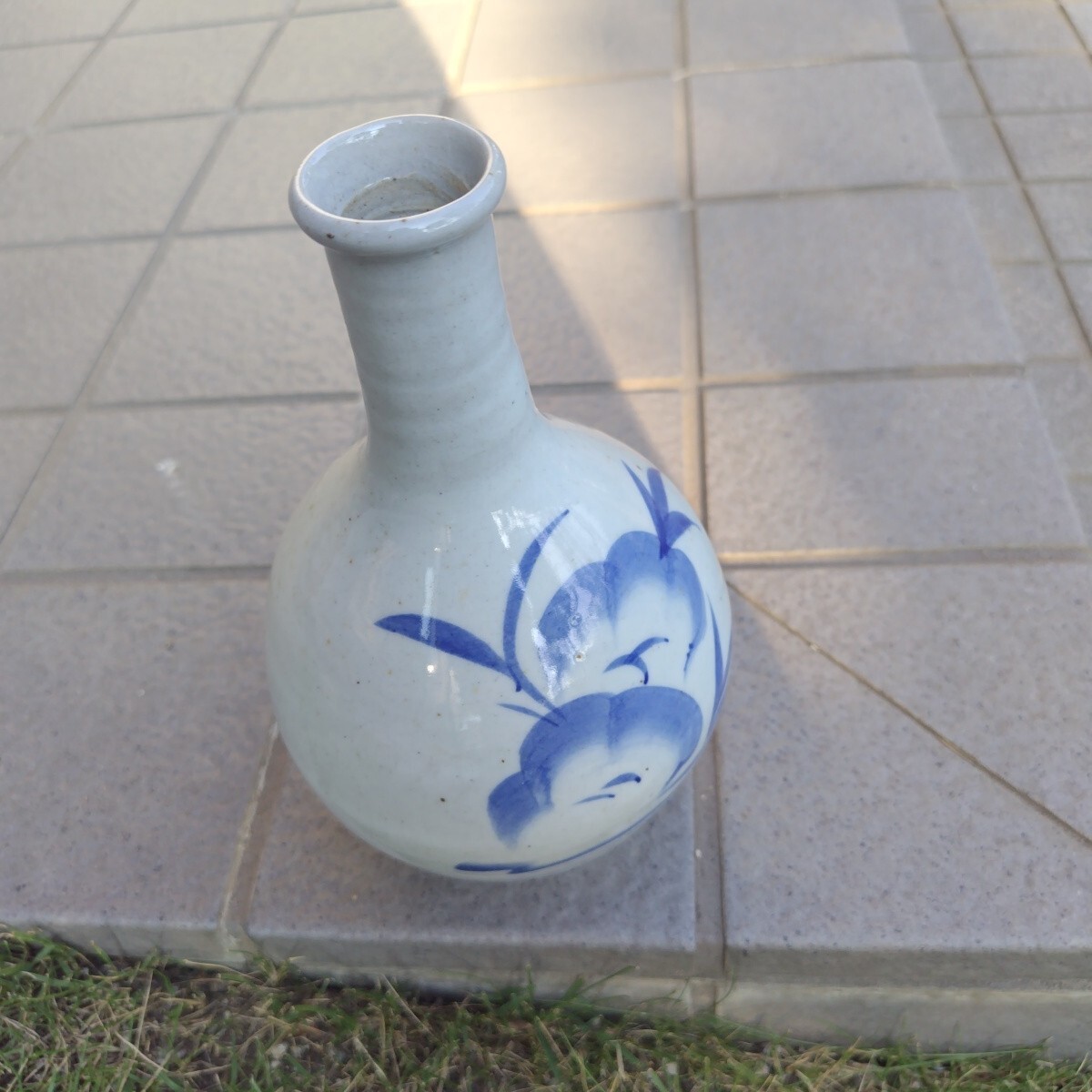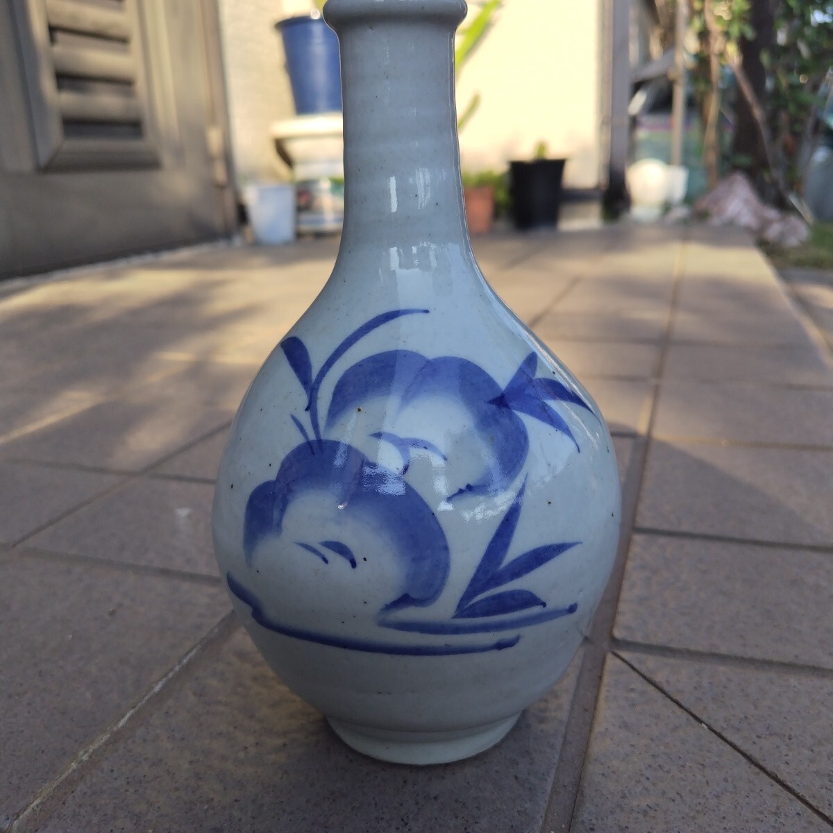 青い花柄が描かれた陶磁器製の花瓶又は徳利