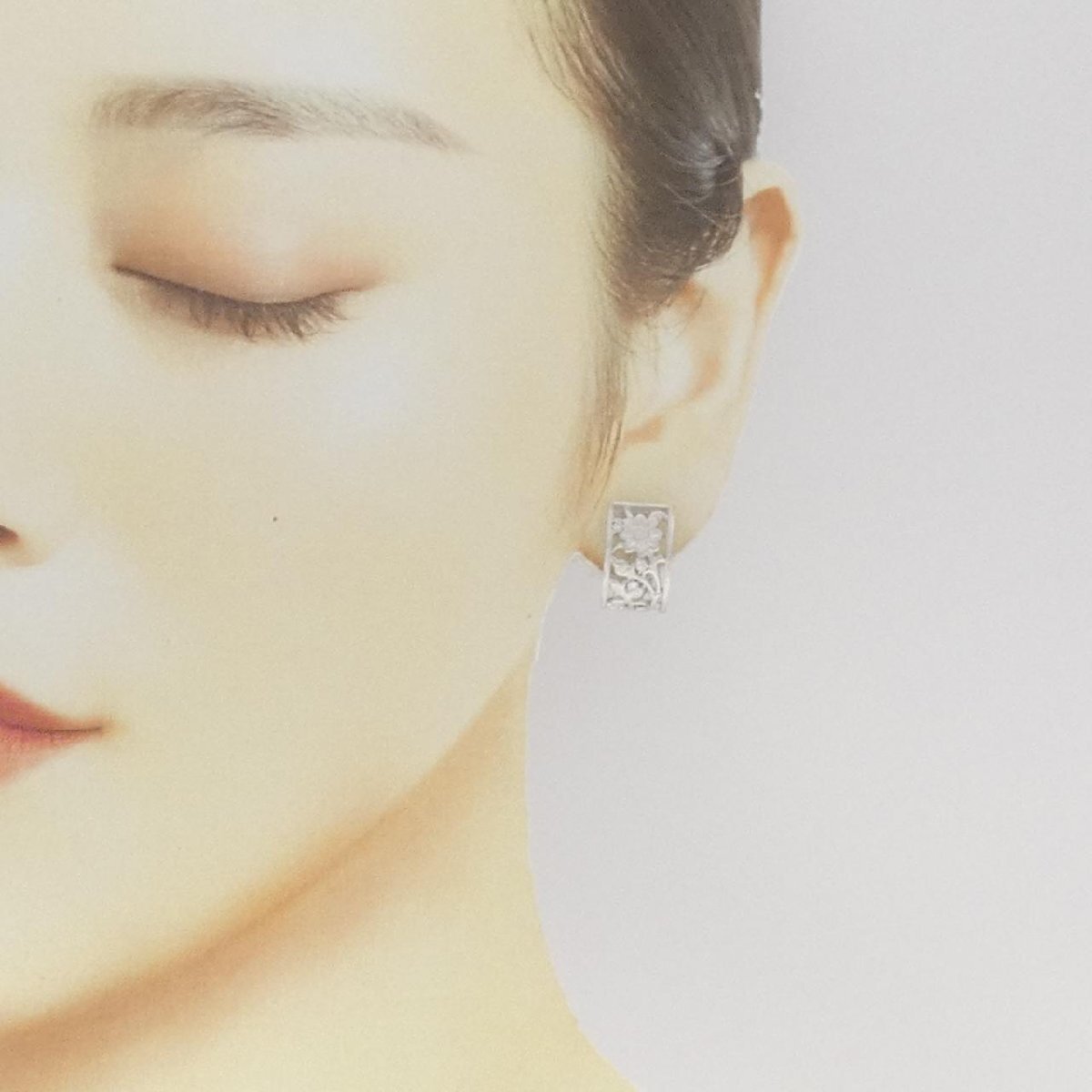 フラワーモチーフに煌めくダイヤモンドがあしらわれたイヤリング。耳元をすっきりと上品に飾ります。