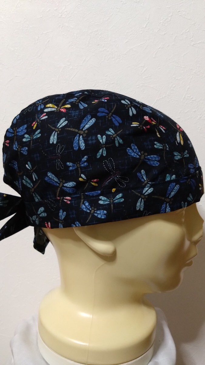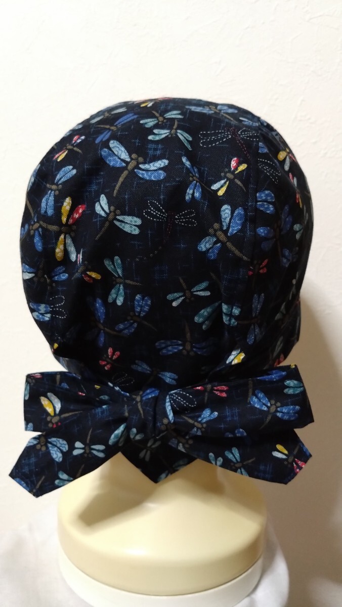 短★バンダナキャップ★ハンドメイド 和柄 とんぼ 井絣 紺