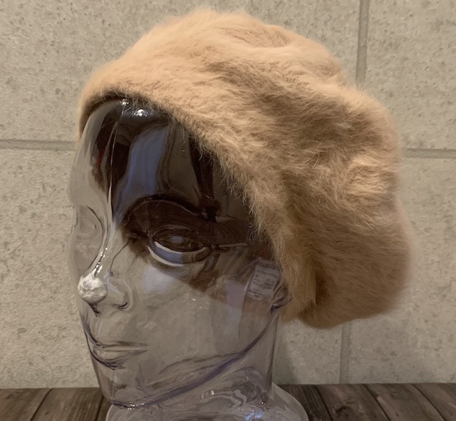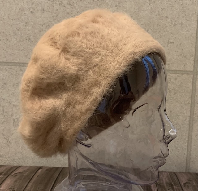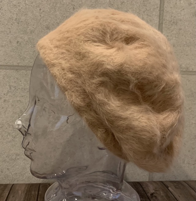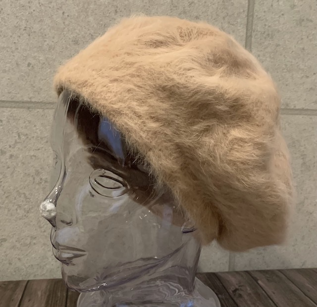 滑らかで柔らかい風合いが心地いいアンゴラ風ベレーです。