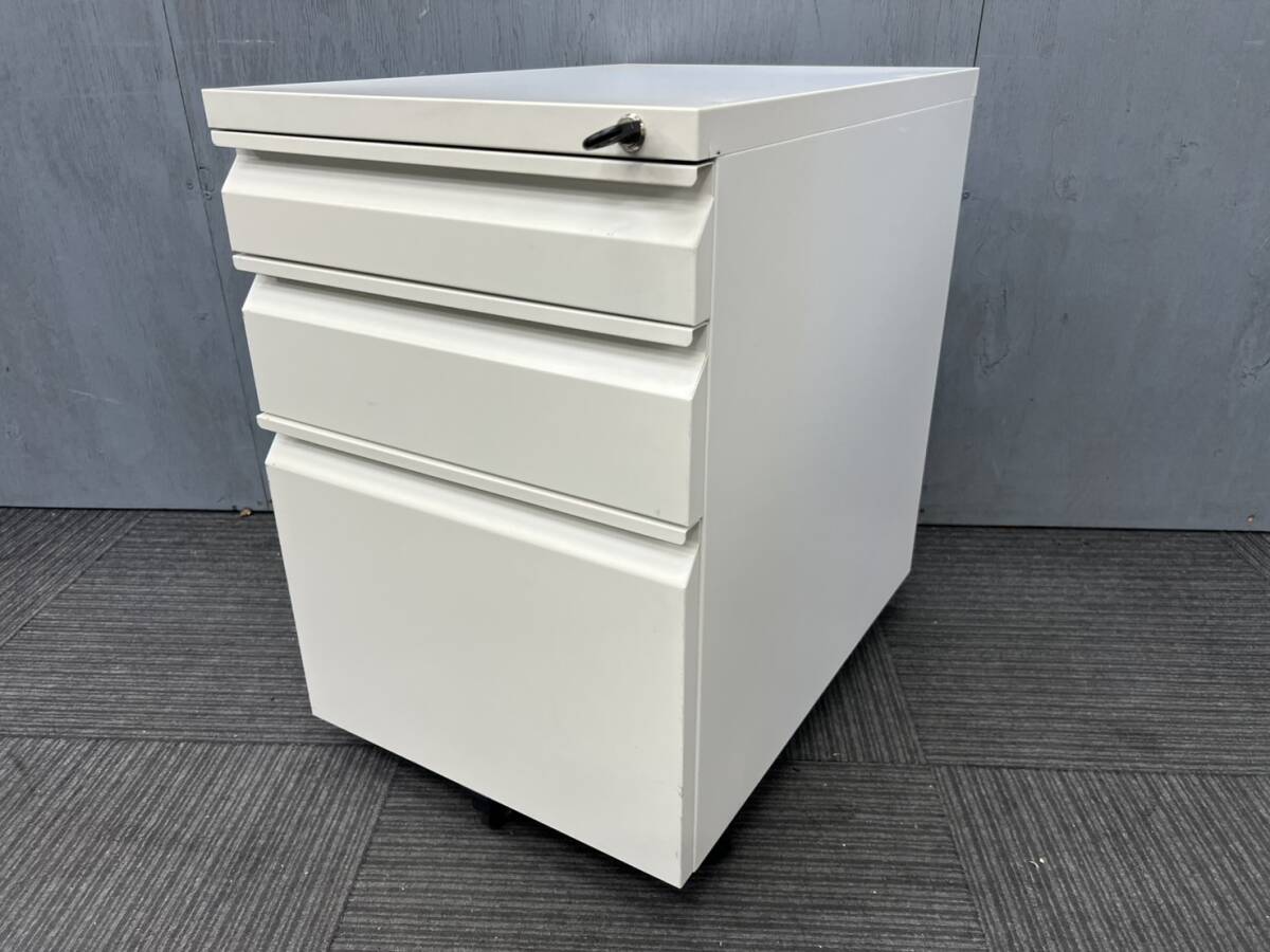 ◆管219◆自社便対応地域あり◆アスクル◆3段デスクワゴン 鍵付き◆幅395mm 高595mm◆白 ホワイト