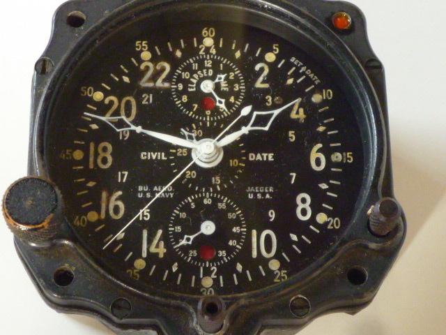 アメリカ・ジャガーウォッチ製24時間表示、軍用飛行機使用のコックピットクロックです。