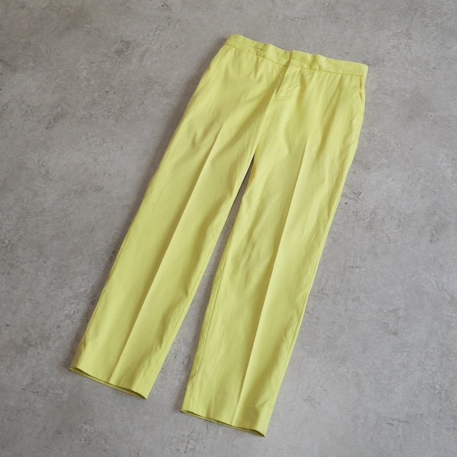 くるぶし丈でフィット感のあるスリムシルエットのカラーパンツ。 発色の良いイエローが着こなしのアクセントになる一本です。 定価42900円です。