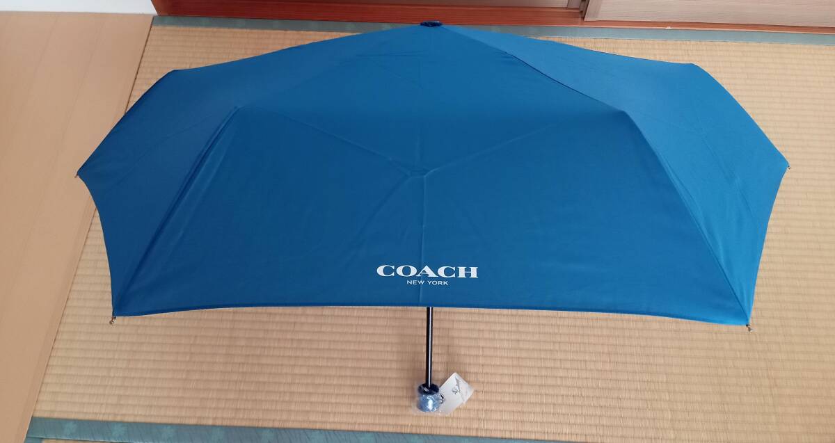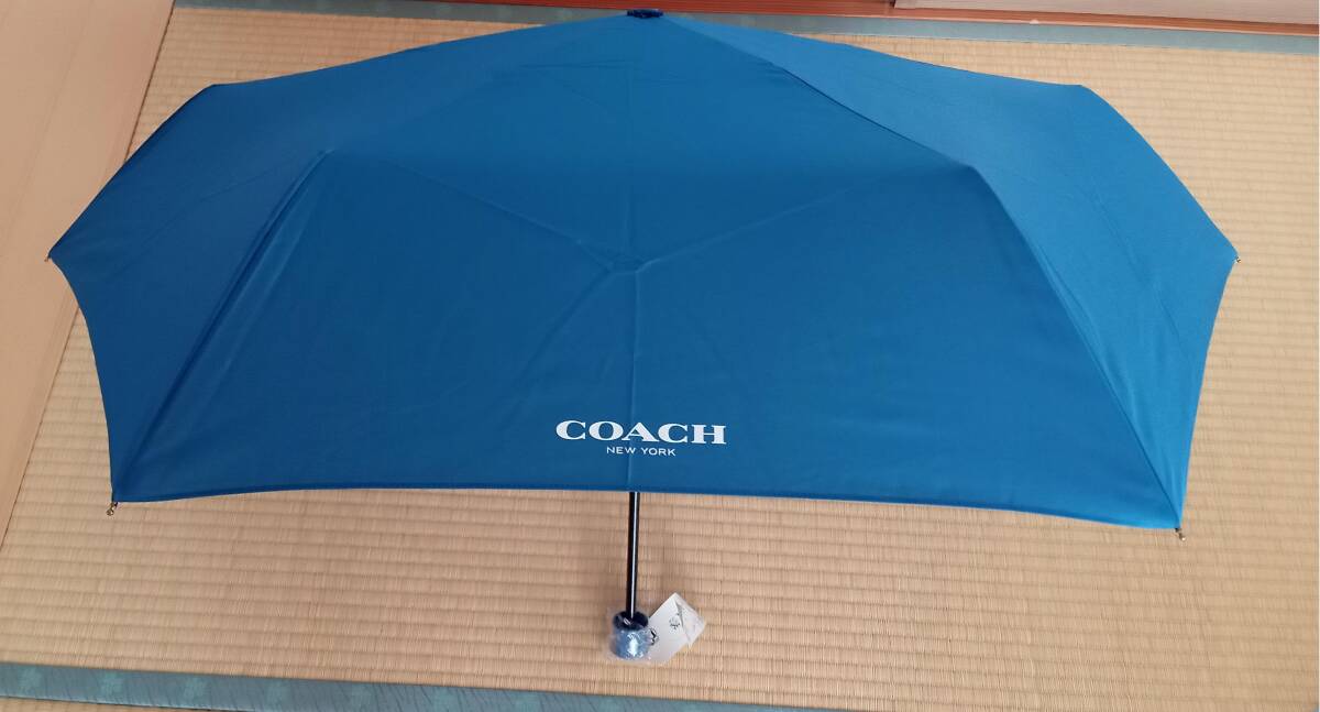 コーチ COACH NEW YORK 折り畳み傘 雨用 6骨 未使用 男女兼用 雨傘 傘 ネイビーブルー
