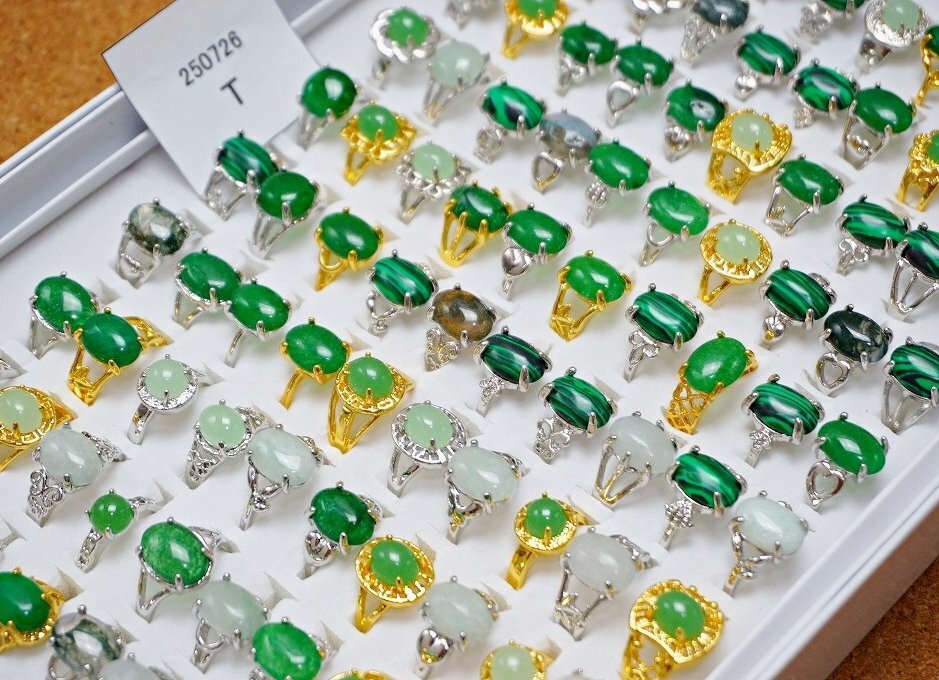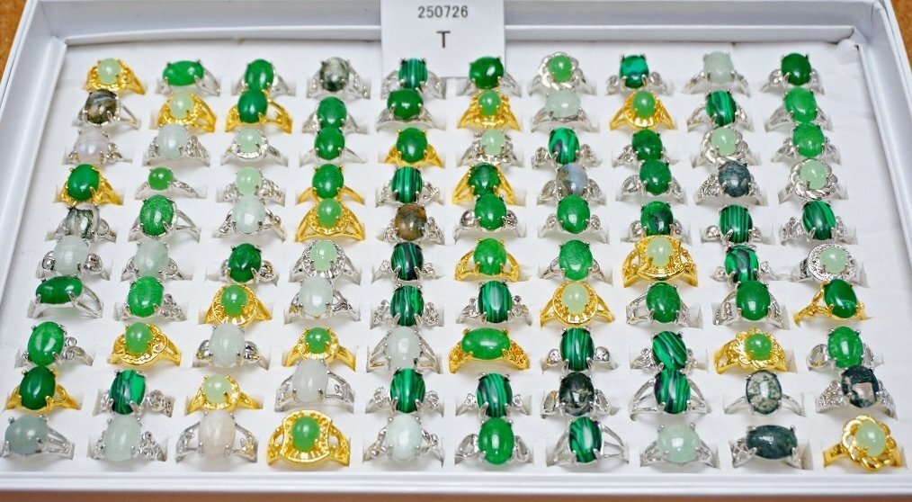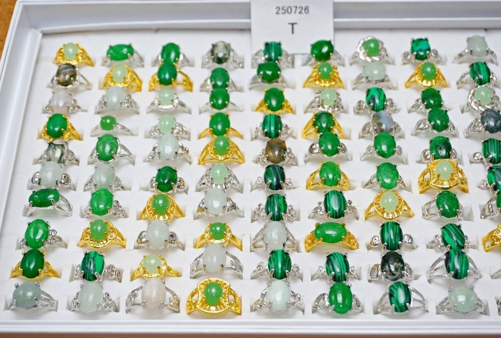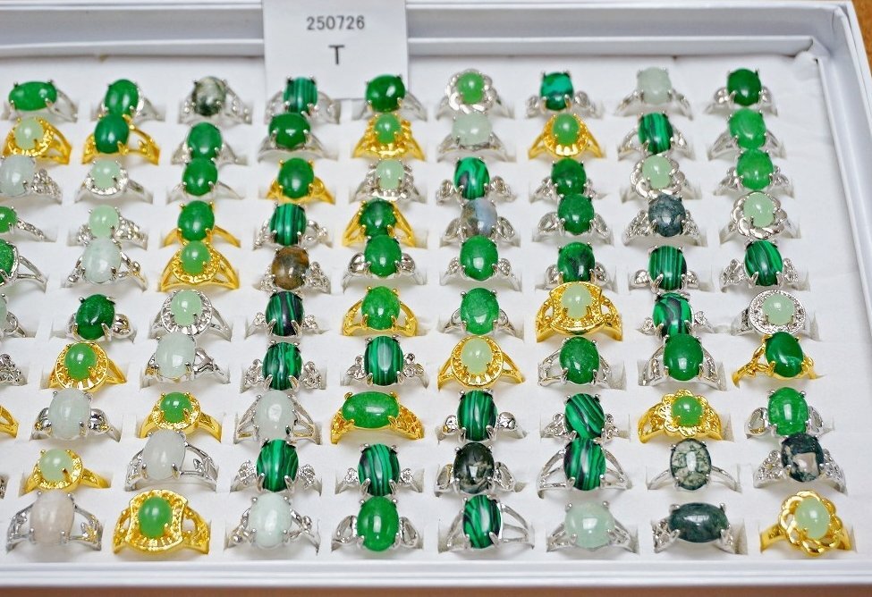 天然石 緑石 指輪 まとめて100点セット 全て天然石の緑石系 ファッションリング 100点セットです。 とても丁寧に研磨されており、艶、色味ともに非常に美しいものです。 写真がお譲りする商品の全てになります。 サイズ:約16~20mm=約10~22号 材質:瑪瑙 マラカイト 玉髄 マレー翡翠 等の天然石 個数:100点 ※ケースはおまけとして出品しますので、ケースの不具合に関しては対応はできません。 当店の他の出品商品との同梱料は下記のとおり落札1点につき200円です。 |
