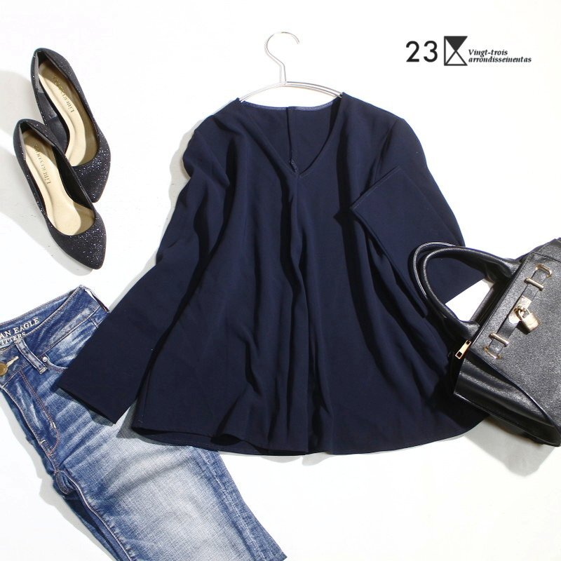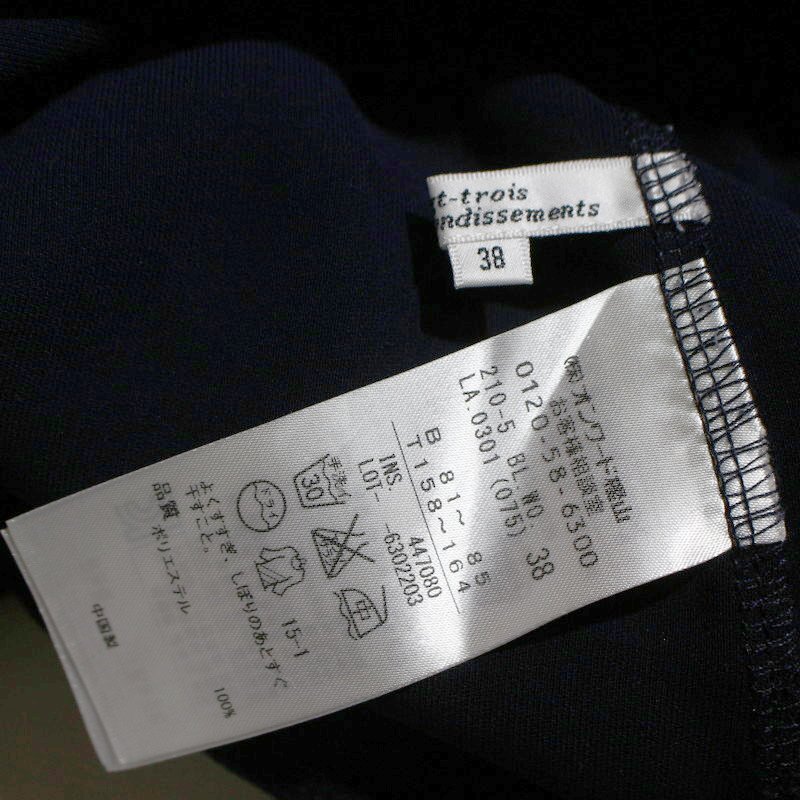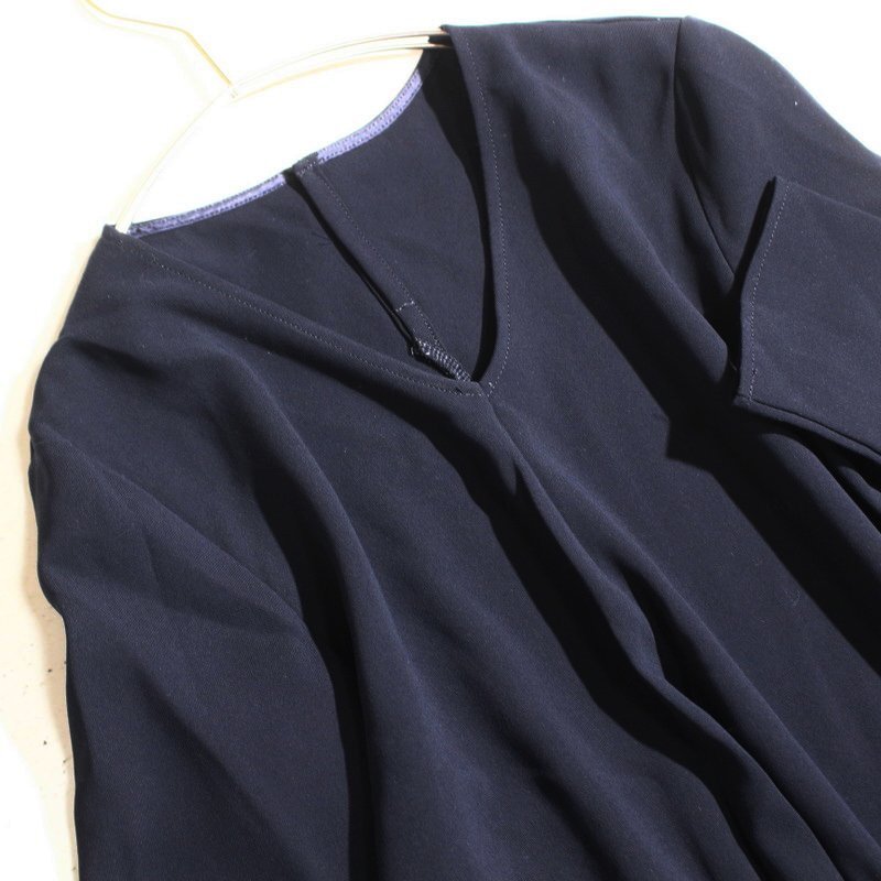 美品 23区 株) オンワード樫山 合物 ジャージ― 長袖 プルオーバー ブラウス カットソー 9号 38 ネイビー 紺 フォーマル オフィス 通勤