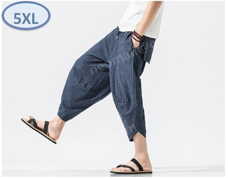 お買い得☆メンズ サルエルパンツ ブルー 5XL カジュアル ヒップホップ 7分丈 スウェット 無地 ポケット付 オールシーズン【063】