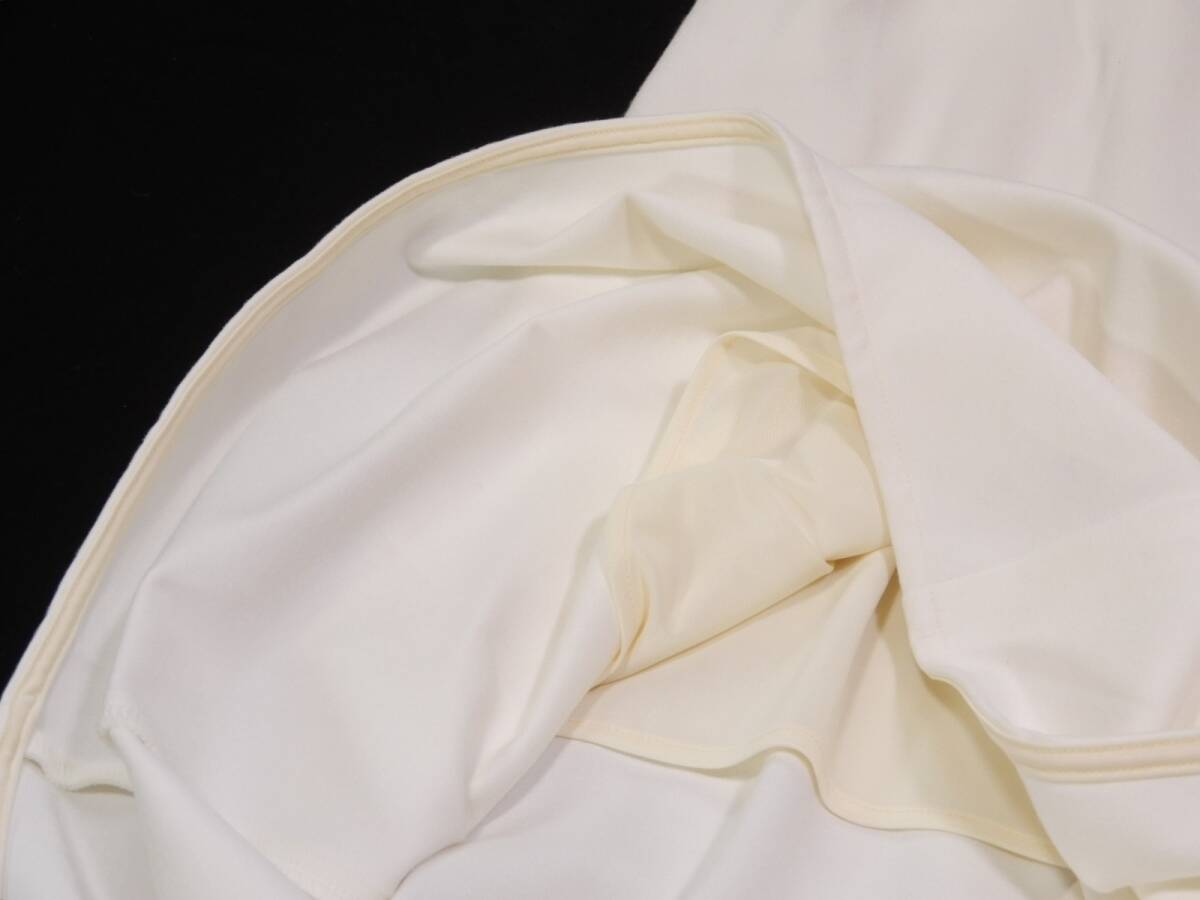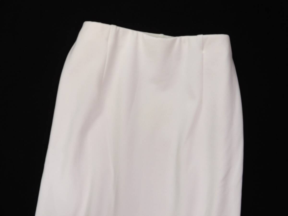 特徴は、ヒップから裾にかけてある程度ゆとりをとったストレートのシルエット。タイトスカートが苦手な方でもトライしやすいデザインで、ロング丈がこなれ感を演出します。 ◇状態 未使用に近い ◇仕様 透け感 : なし 裏地 : あり 伸縮性 : あり 光沢 : なし 生地の厚さ : 中厚 お洗濯:手洗い可 ◇サイズ表記 : L ◇実寸 :w35×2(ゴムウエスト)H46×2 総丈91㎝位 *素人採寸ですので多少の誤差はご容赦ください ◇素材 : 表地 レーヨン63 ナイロン32 ポリウレタン5 裏地 ポリエステル100% ◇カラー : ホワイト系 * 実物に近いように撮影しておりますが、各御家庭でのモニター環境等により、お色など見え方が異なる事がある事をご理解の上、入札をお願い致します。 | ||