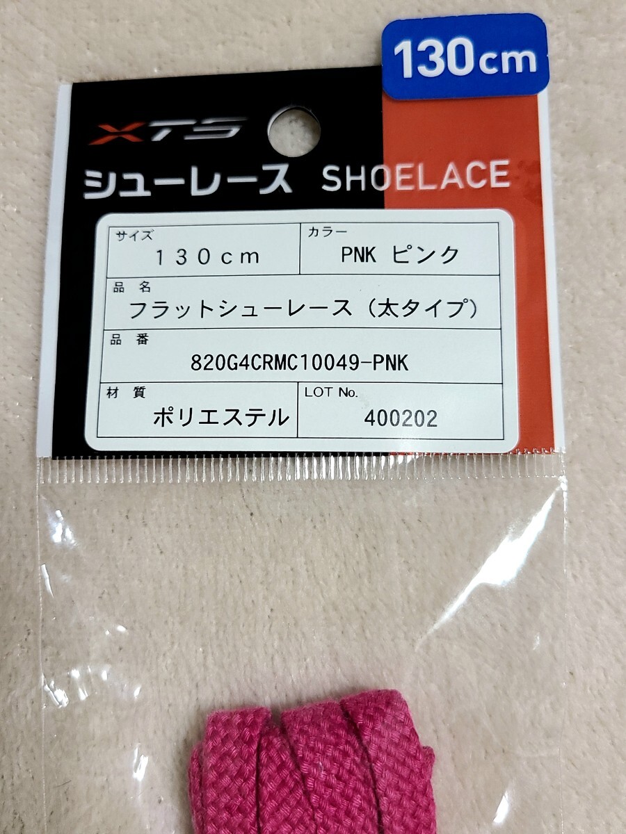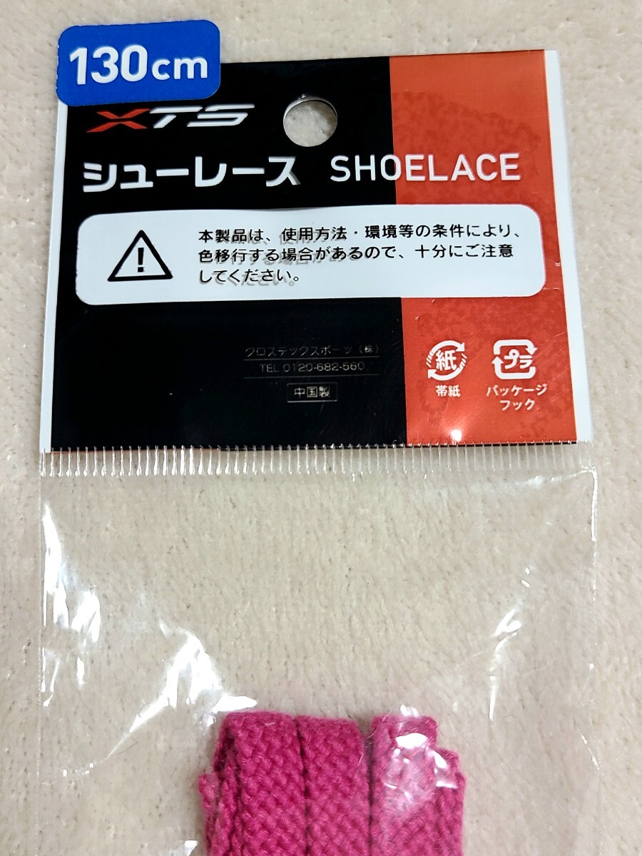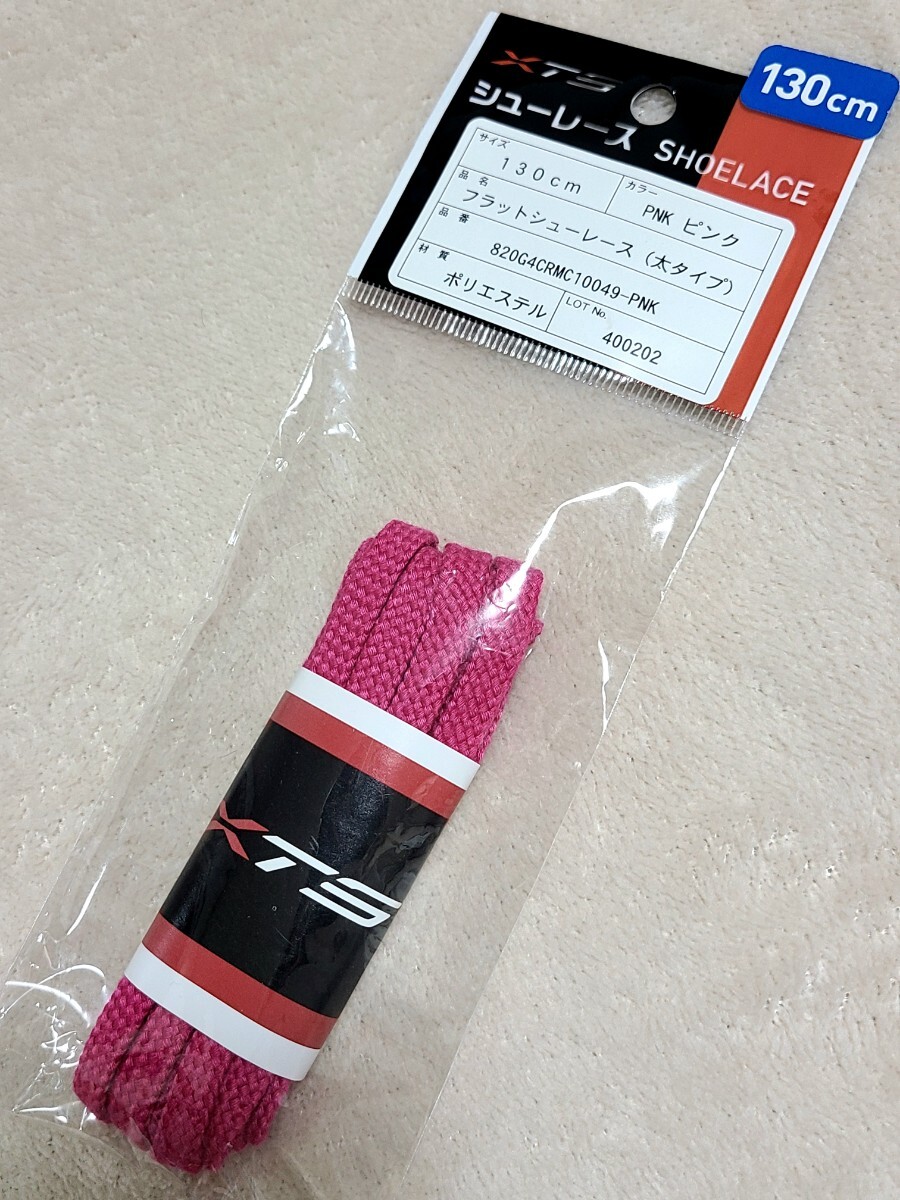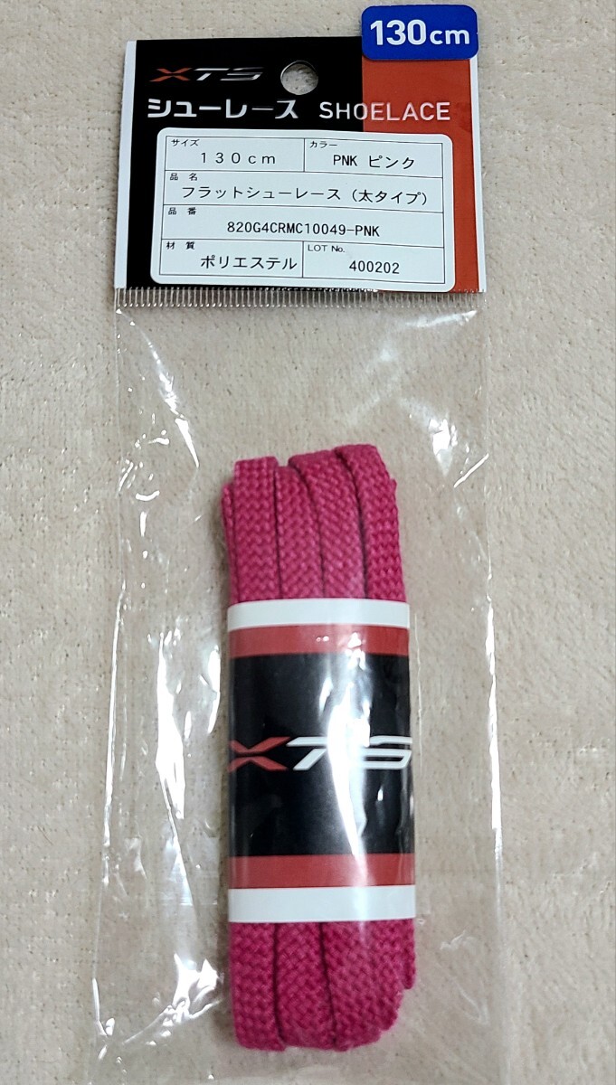 靴ひも XTSフラットシューレース(太タイプ) ピンク 130cm 1パック2本入 靴紐 平紐  クロステックスポーツ