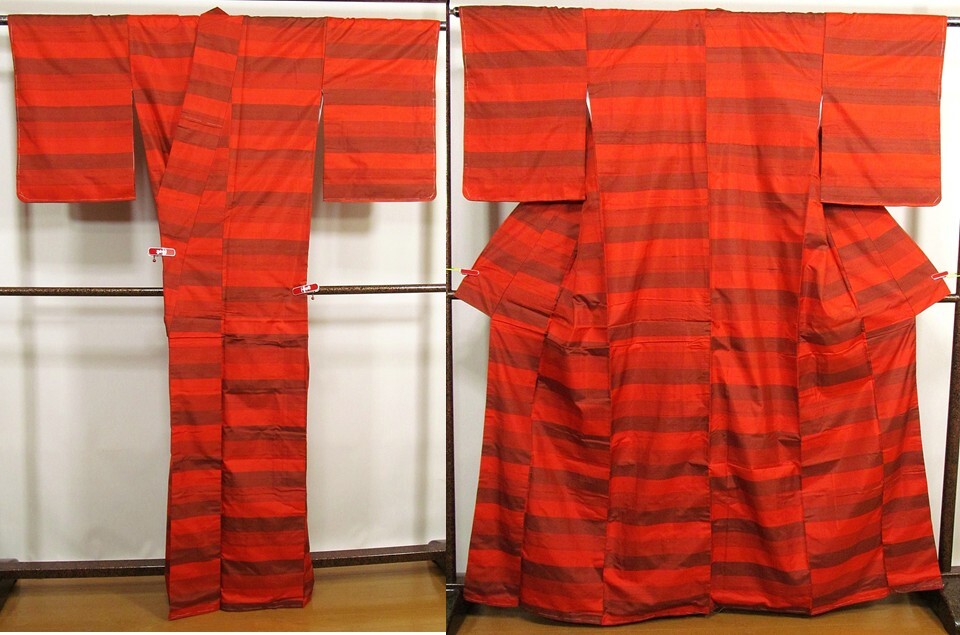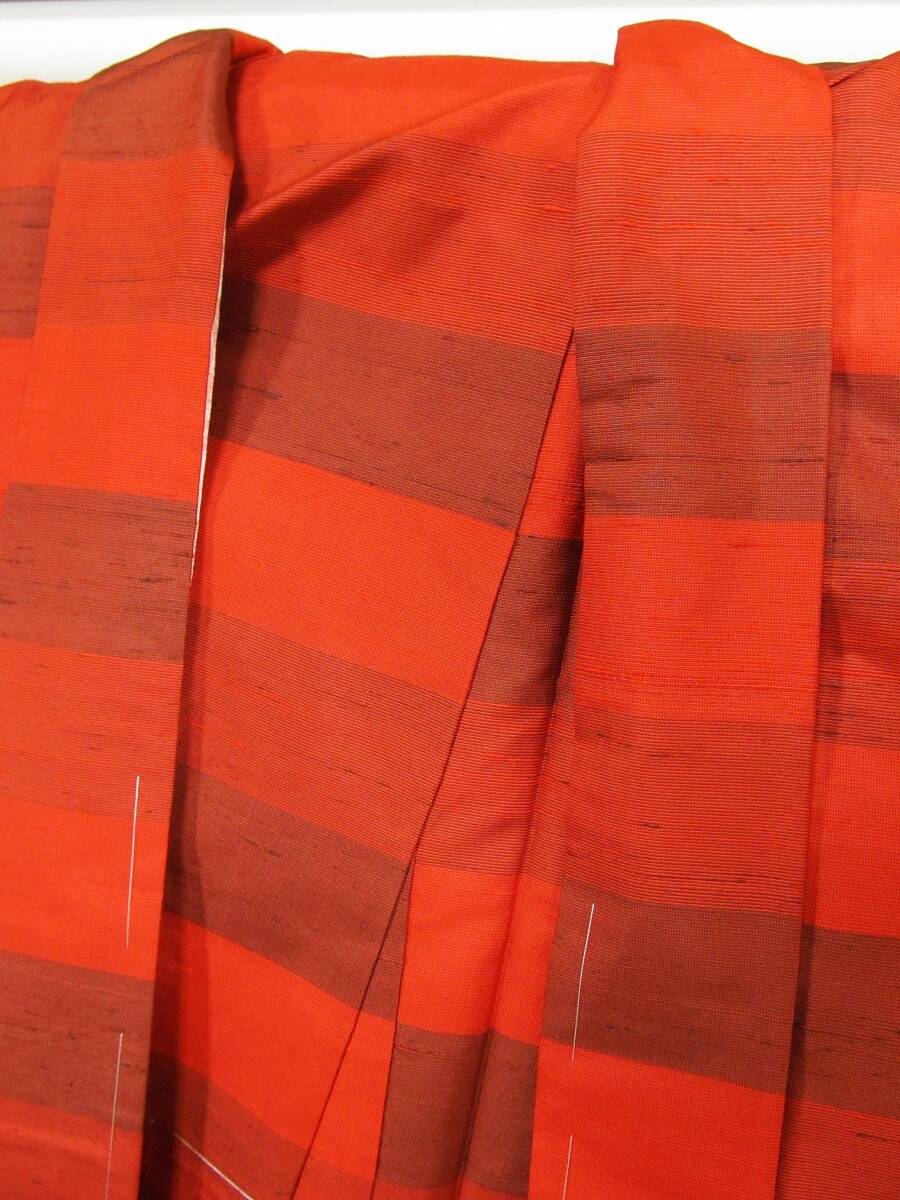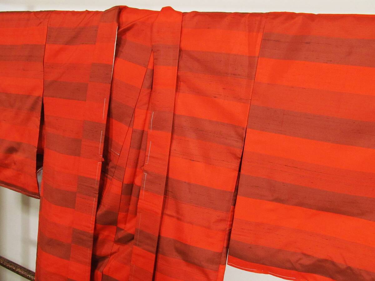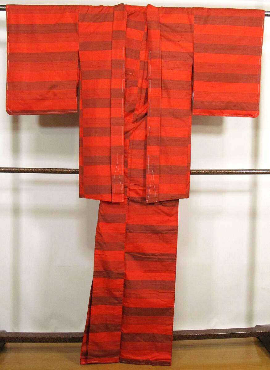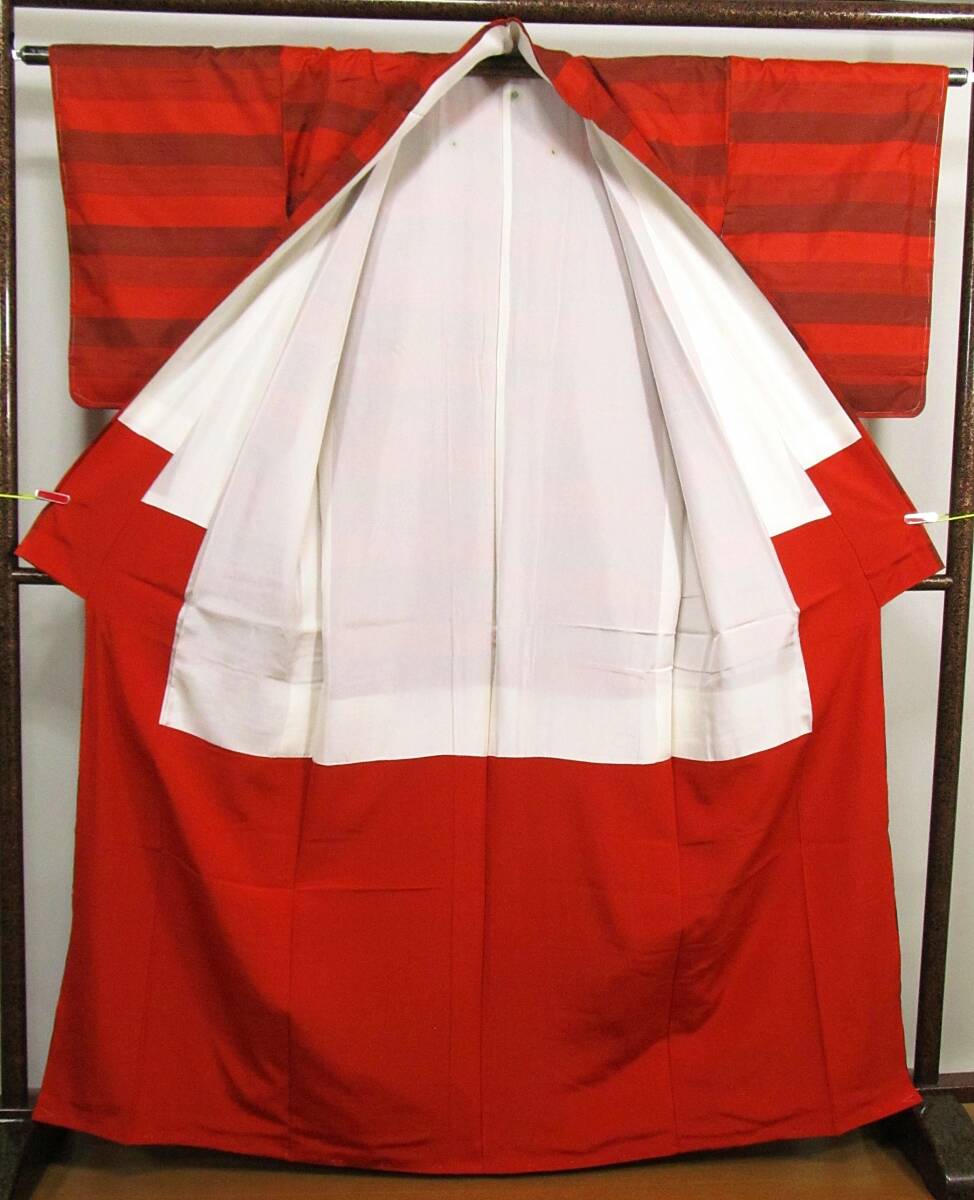 は120 正絹 紬 女性用 アンサンブル ボーダー柄 身丈167cm