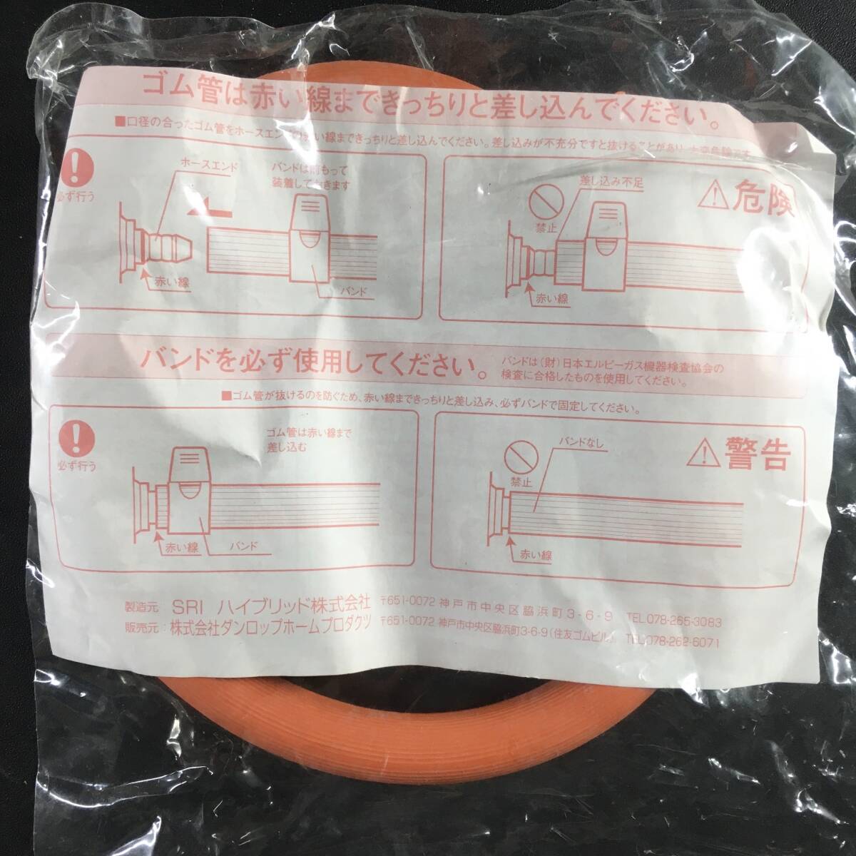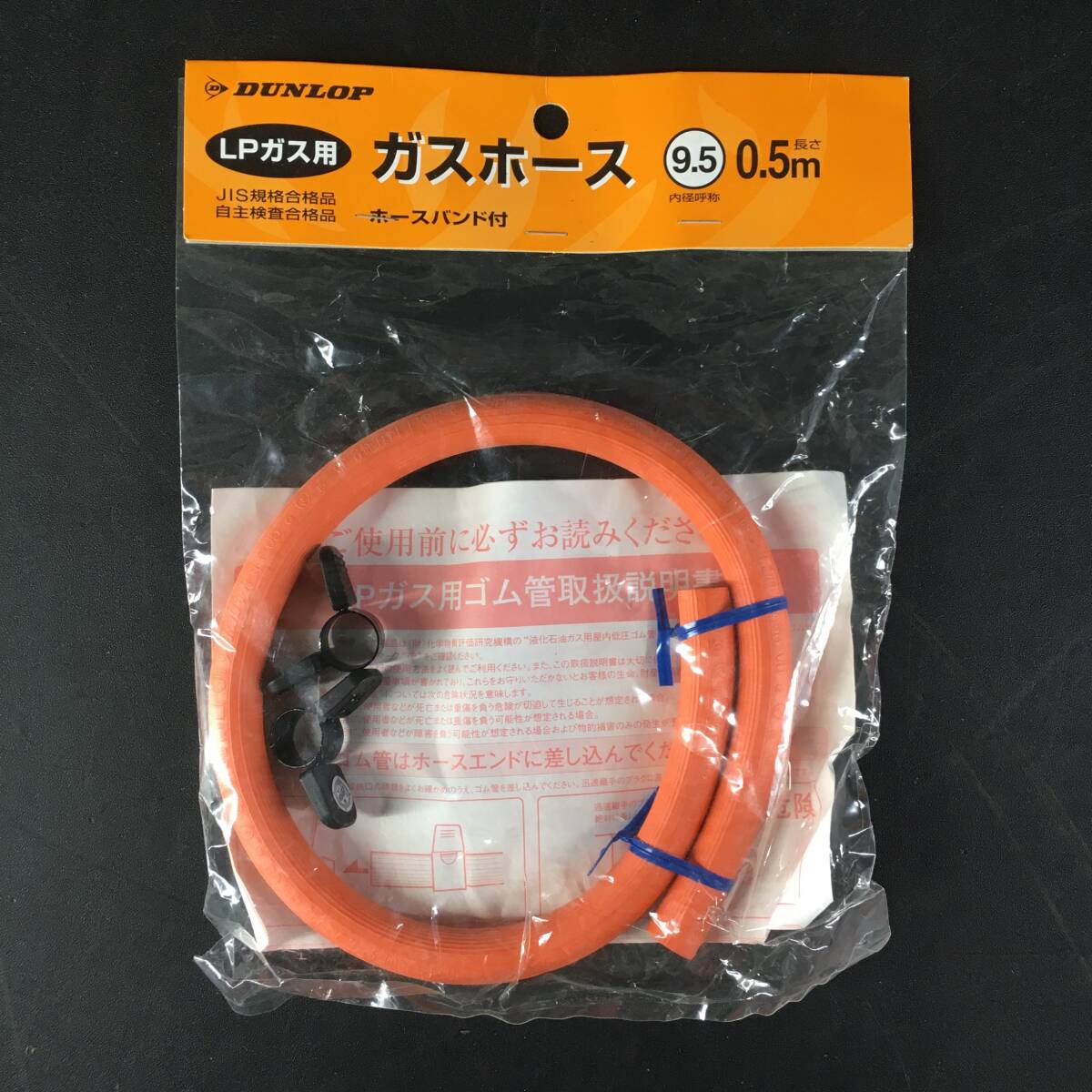 [未使用]DUNLOP ダンロップ LPガス用 ガスホース ホースバンド付き 内径9.5mm 長さ0.5m 未開封/8RI31I