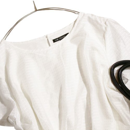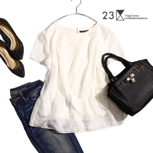 美品 23区 株) オンワード樫山 艶 ボーダー 柄 オーガンジー 涼し気 綺麗め 半袖 カットソー 9号 38 ホワイト 白 ミセス オフィス 通勤