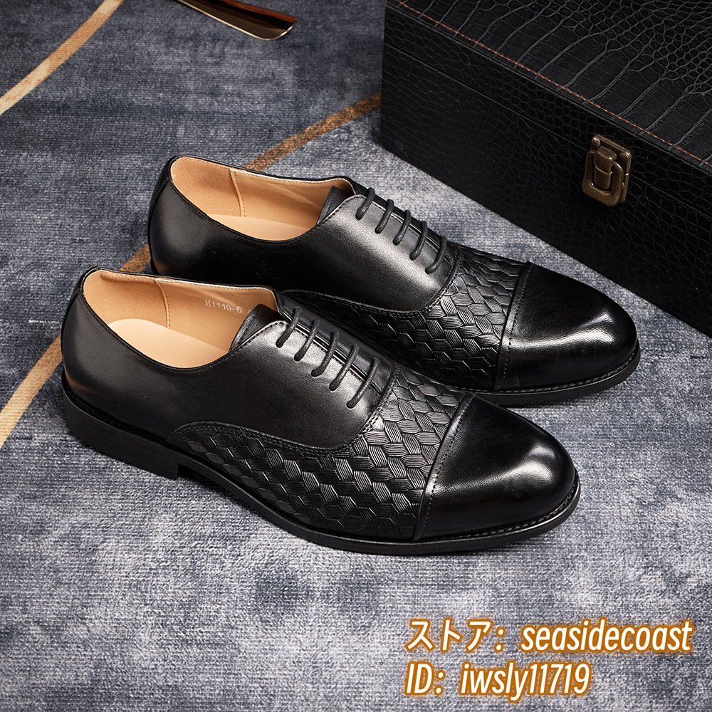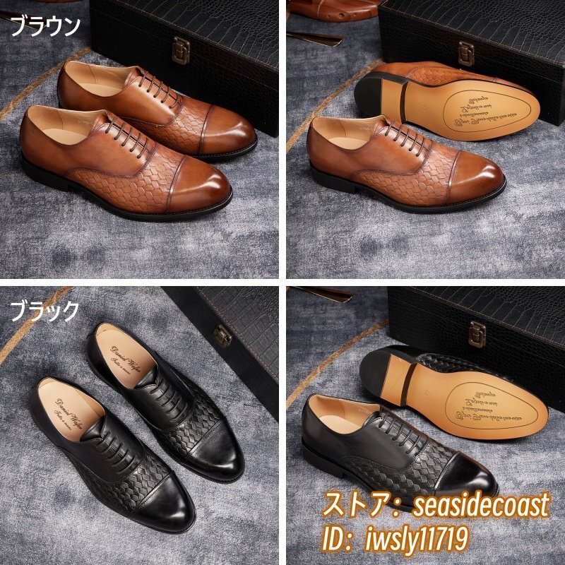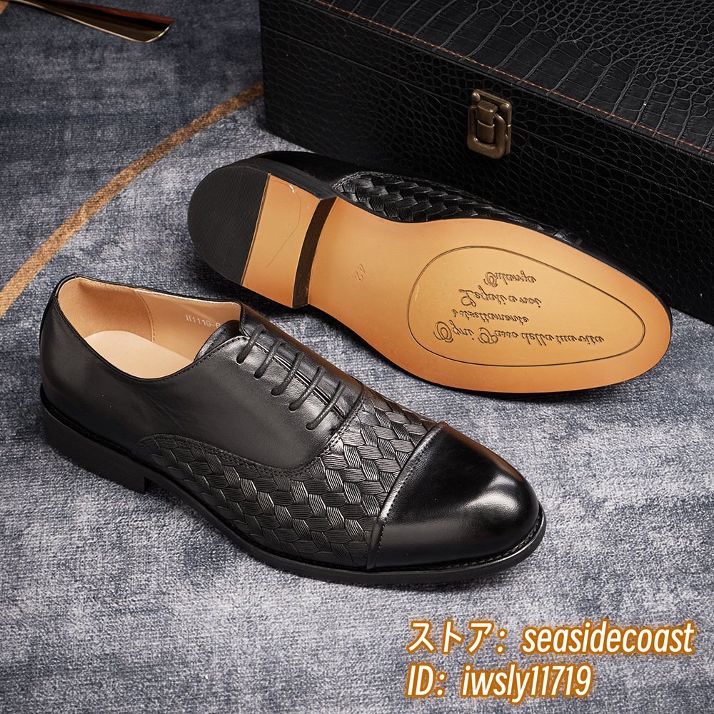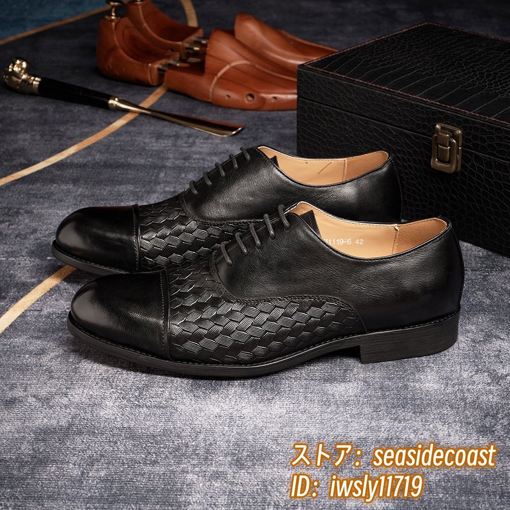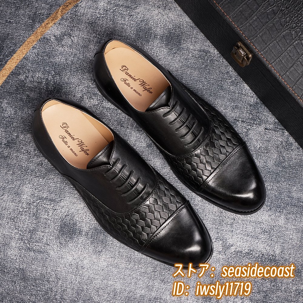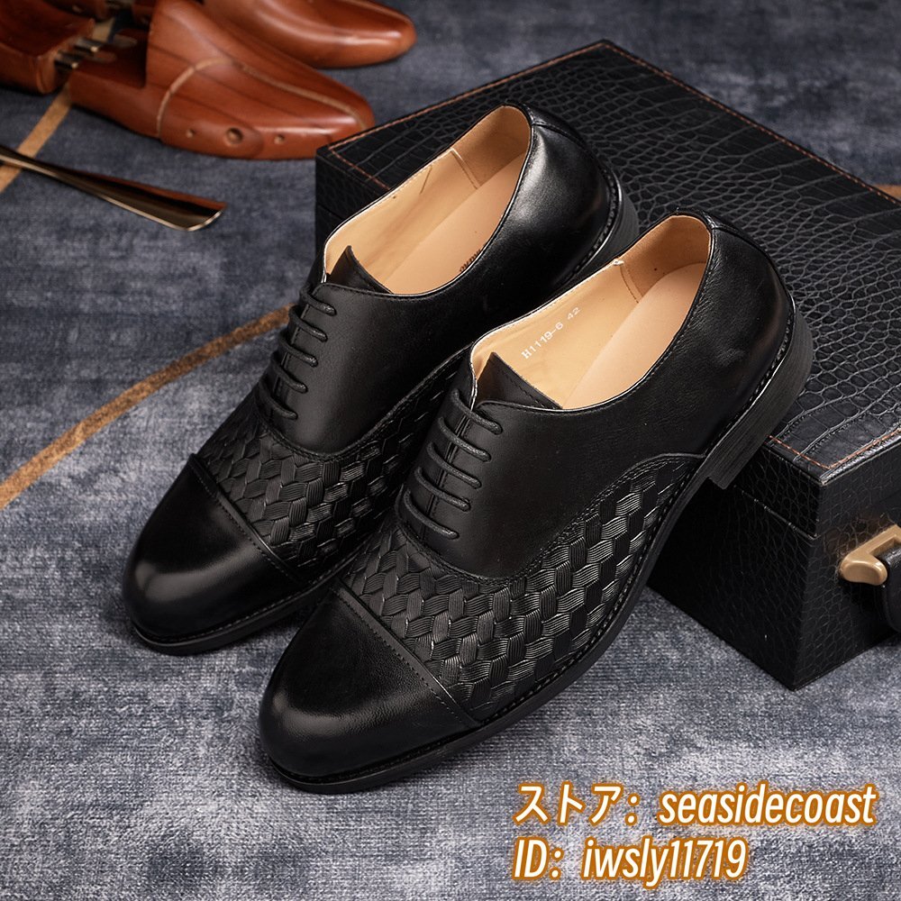 定価11万超★新品 ビジネスシューズ 本革 レザーシューズ 超希少 牛革 職人手作り 編み込み 革靴 紳士靴 フォーマル 通勤 ブラック 26.5cm