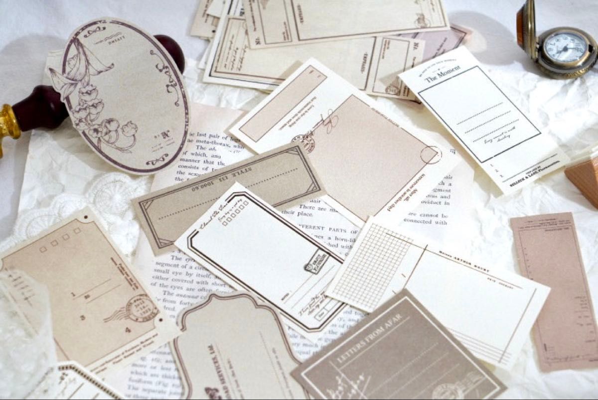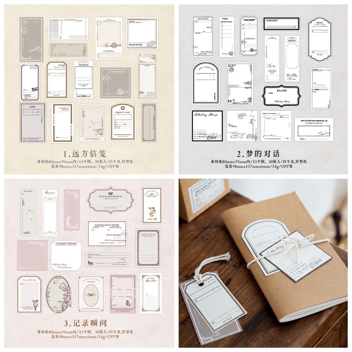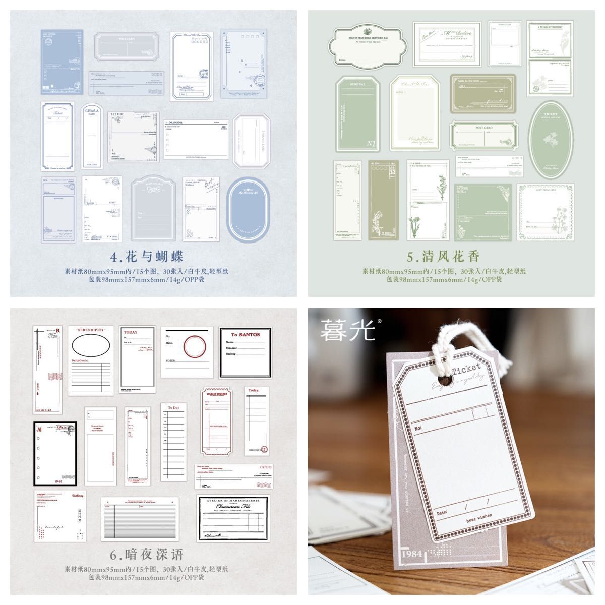チケットシリーズの素材ペーパー6種180枚です♪軽型紙と手書き文字やイラストと相性が良いクラフト紙を使用*シンプルでお洒落なデザインがメモなど書き込みも出来てたっぷり入っております☆スクラップブッキングやジャンクジャーナル、スマホやアルバムなどコラージュ素材に素敵な装飾となります*