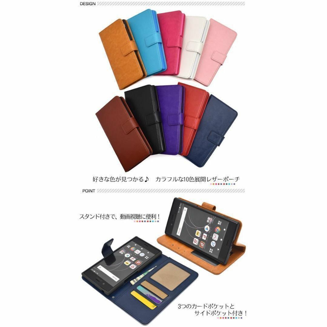 カラフルな10色展開のカラーレザー手帳型ケース。