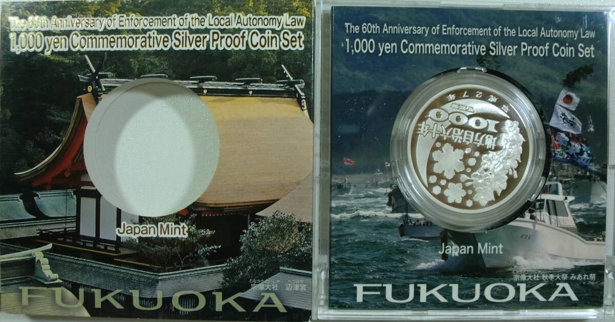 ▼地方自治法施行60周年記念 千円銀貨幣プルーフ 福岡県▼sm598