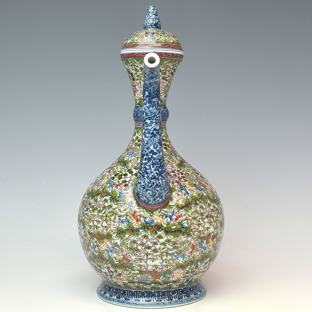 | 商品名 | 葉山有樹作 「鹿鳴図水注」 秀逸希少作品 超絶細密絵付師 高さ 29cm 共箱 本物保証 Y2161【趣楽】 | ||
