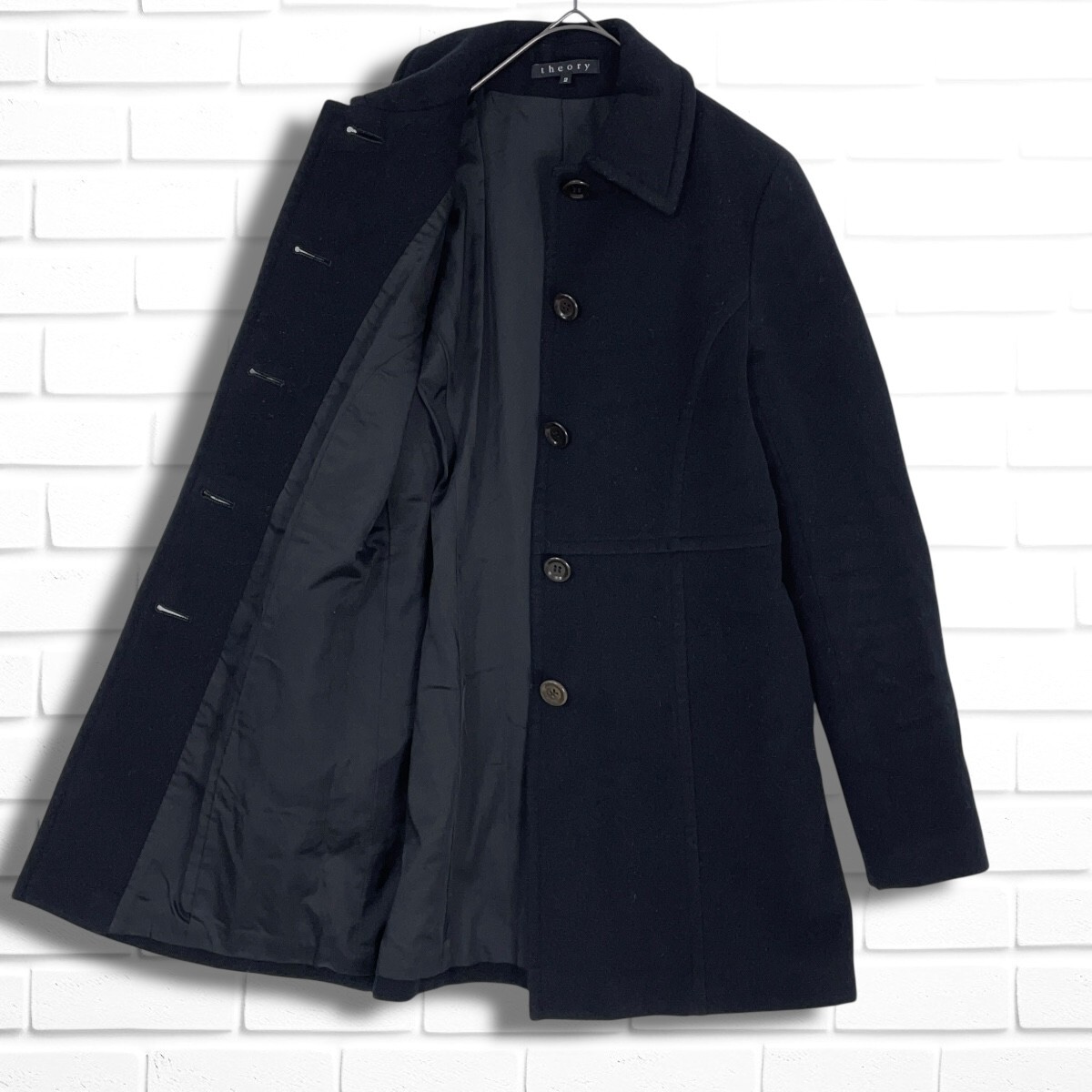 ◆良品◆ theory セオリー ウール × カシミヤ ステンカラー コート 黒 ブラック レディース 2 ◆日本製 送料無料◆ 4495H◇