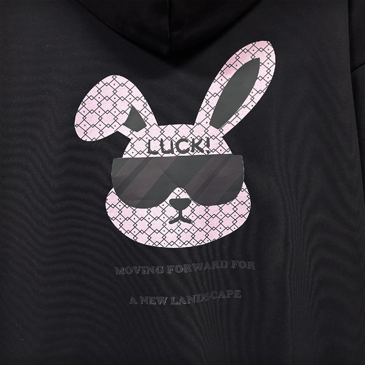 ゆったりしたシルエットと適度な落ち感により、大人っぽく着ていただけるデザインです。バックのカッコいいウサギプリントは、クラシックでありながら個性を失わないデザインで、カジュアルで抜け感があり、キュートで人目を引きます。