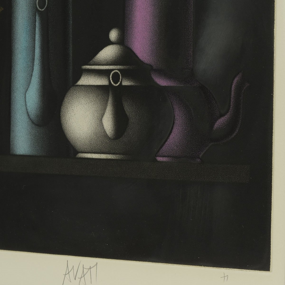 ●525614 送料込み 人気作家 MARIO AVATI (マリオ・アバチ) 銅版画 「カフェテラス」 限定65部 直筆サイン 額装