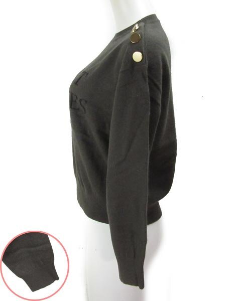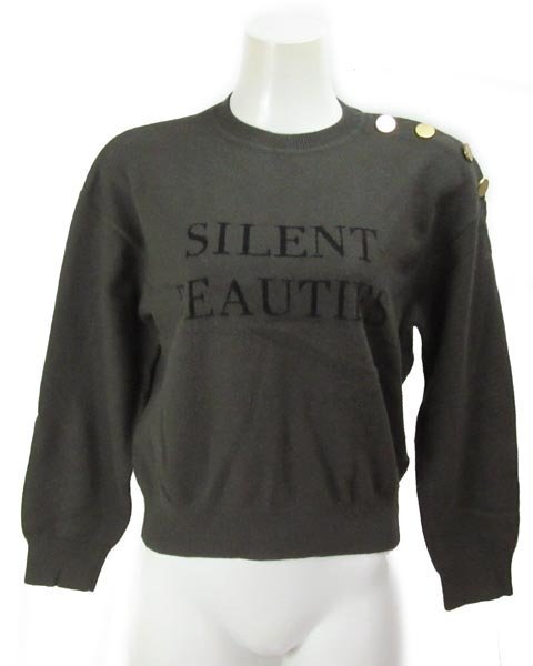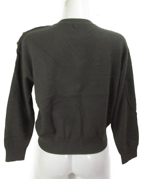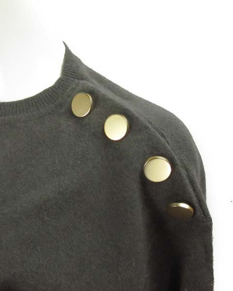 アンゴラ混の暖かいニット。深みのあるカーキで秋冬のスタイルが楽しめます。肩口にはマットゴールドの飾りボタンがついています。ショート目の丈で脚長効果があります。 |