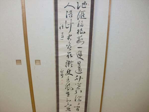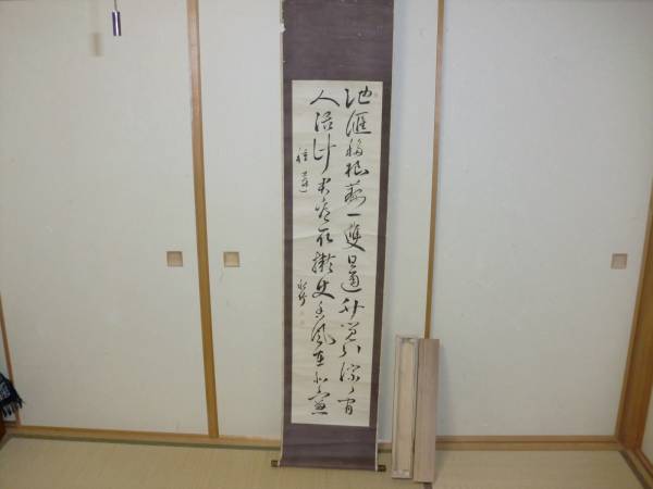 【模写】永久保存版 掛軸 新居水竹 二行書 徳島藩最後の侍 庚午事変 保管木箱
