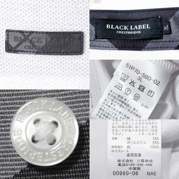 【大きいサイズ 3L】送料無料!新品 ブラックレーベル クレストブリッジ吸水速乾性◎ハニカムカノコ半袖ポロシャツBLACK LABEL CRESTBRIDGE