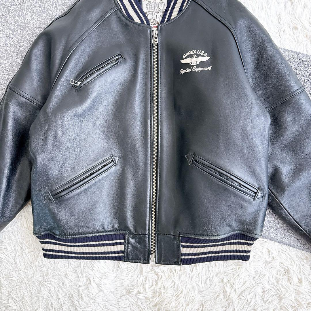 AVIREX 本革 レザー ヴァーシティ ジャケット L
