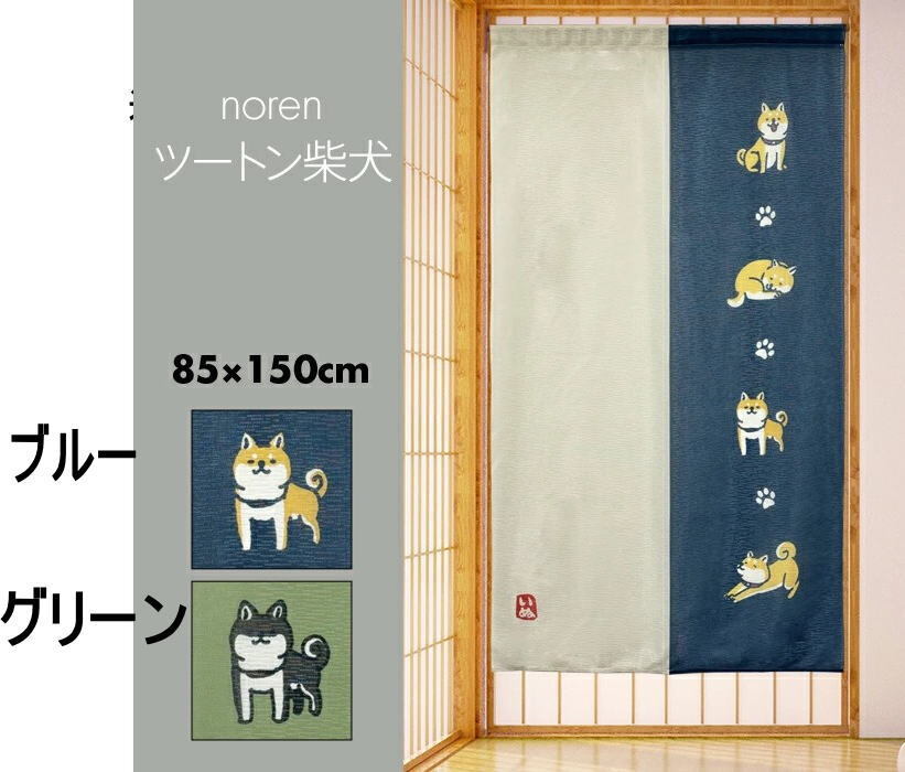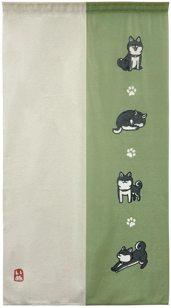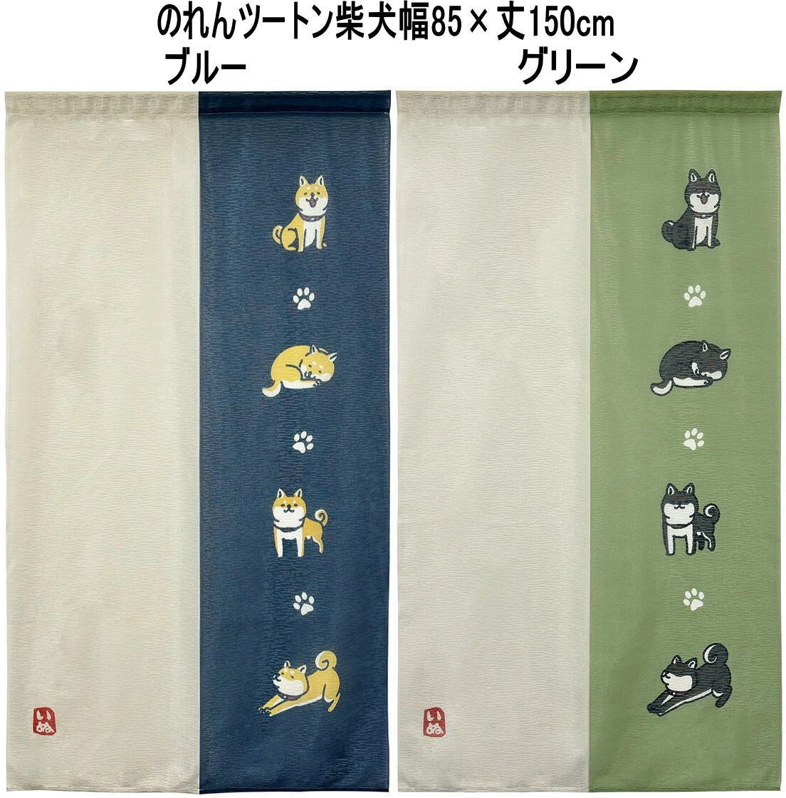 【プリントのれん】ツートン柴犬幅85x丈150cmグリーン-niil