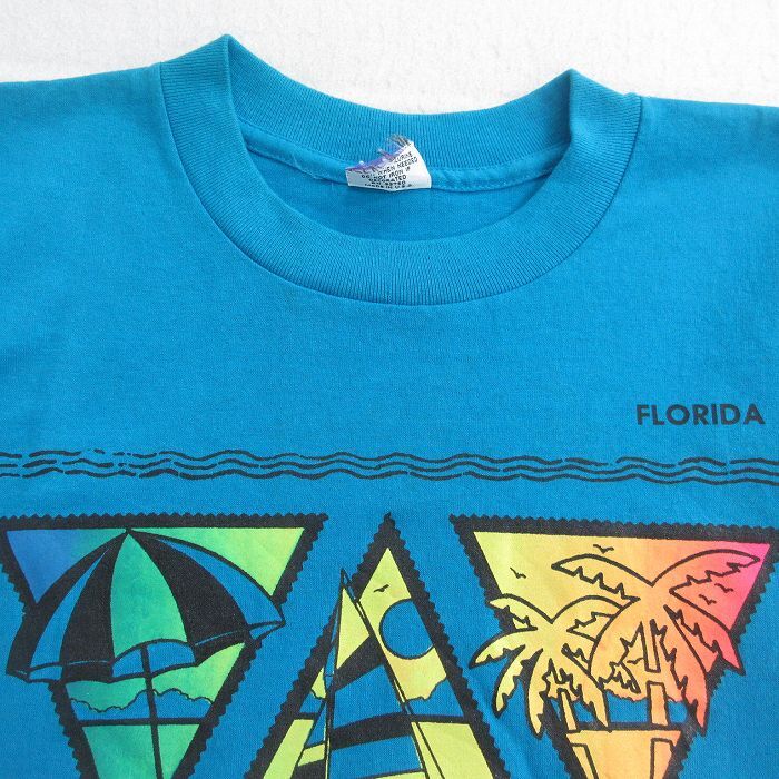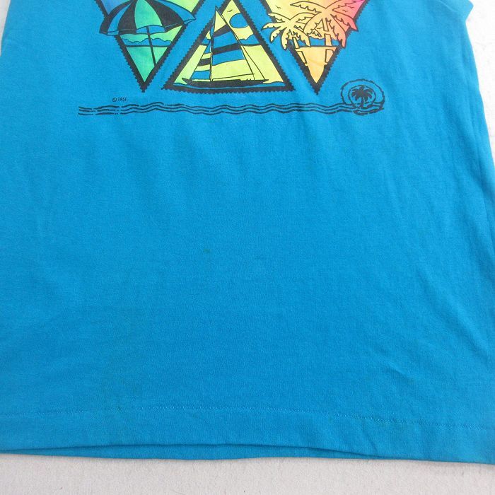 【商品名】 M★古着 ノースリーブ ビンテージ Tシャツ メンズ 90年代 90s フロリダ ヤシの木 ヨット クルーネック USA製 薄紺