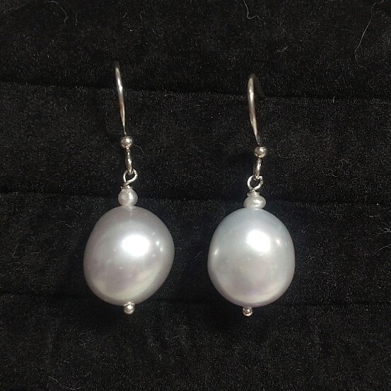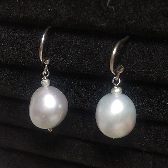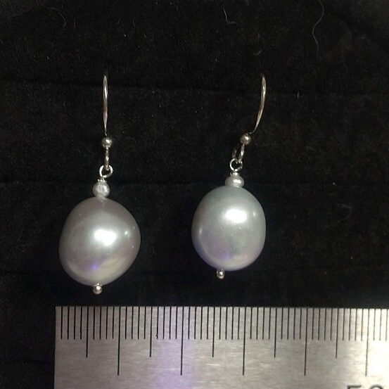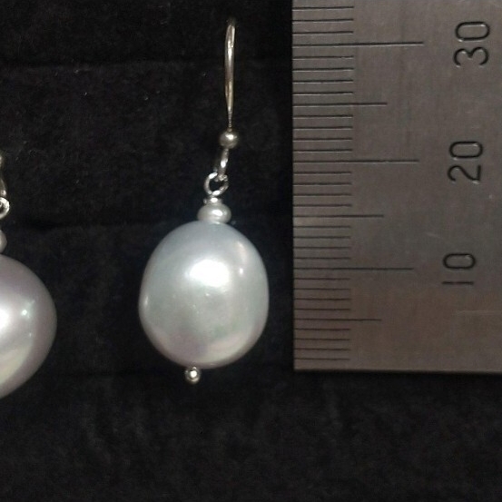 本真珠 淡水 バロック パール ピアス グレー オーロラ色系 925