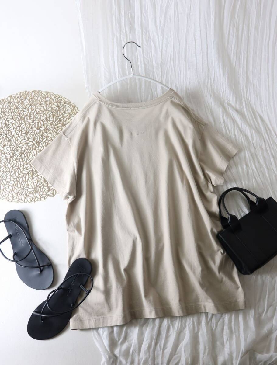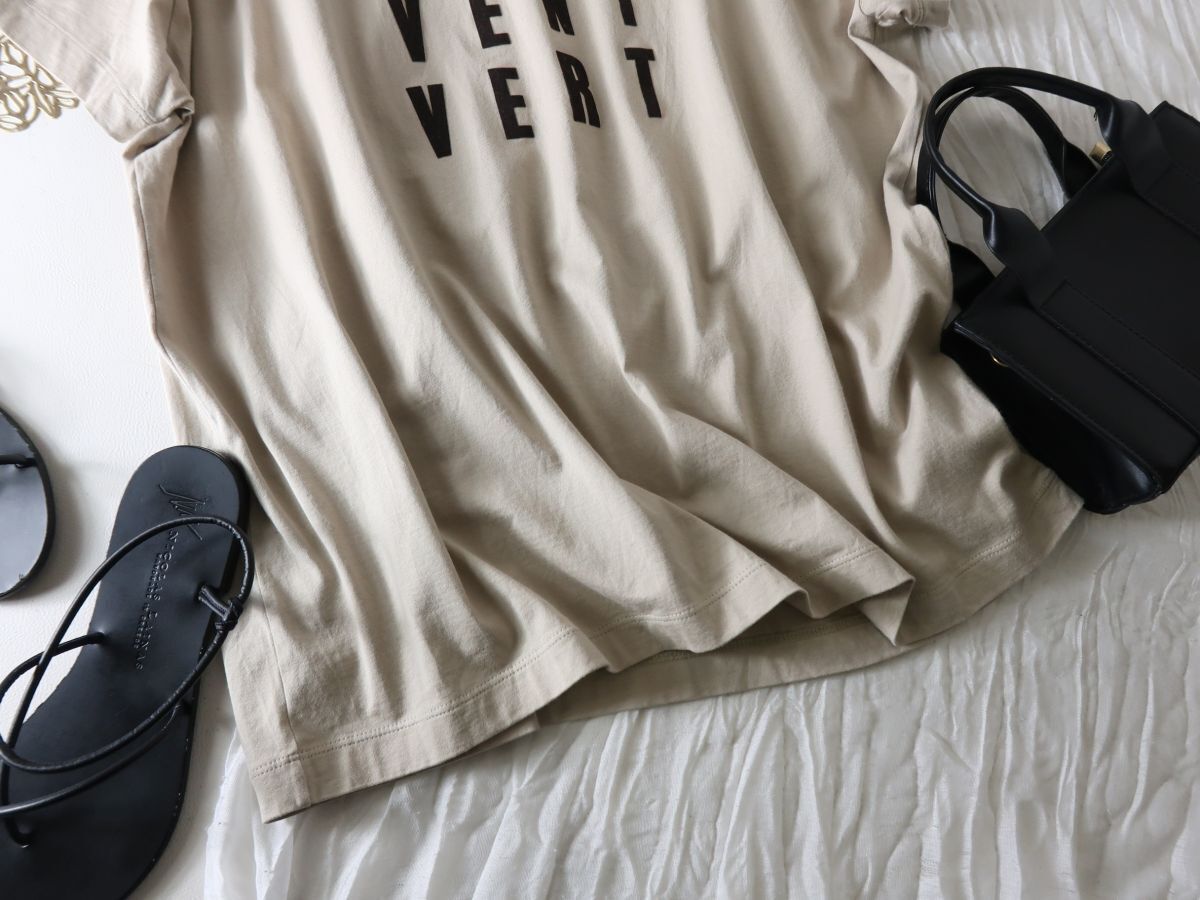 素材にこだわったオリジナルTシャツ。極限まで高密度に編み立てることで透けにくく適度に張りがある素材。表面の毛羽をとる加工を施しているので綿のナチュラルな光沢感も特徴です。さらに製品洗いして光沢を程よく抑えたラフな仕上がりは今の気分にぴったり。ロゴの【LE VENT VERT/ヴァンヴェール】とは、みどりの風(晴れの比喩)。