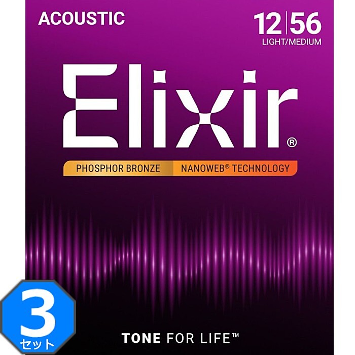 3セット Elixir Nanoweb #16077 Light/Medium 012-056 Phosphor Bronze エリクサー コーティング弦 アコギ弦