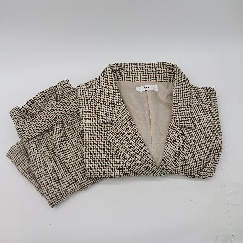 ◇ ⊂ WE GO ウィーゴ― 千鳥格子柄 ミニ丈 S スカートスーツ サイズF ブラウン系 レディース E