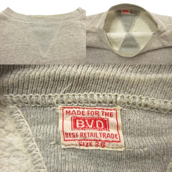 ヴィンテージ VINTAGE 40s 50s B.V.D. 両V はめ込み ガゼット スウェット 36 セットン 無地 霜降りグレー トレーナー