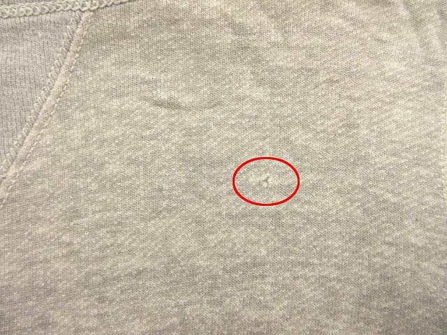 【状態】フロント左首下付近に小さな穴がございます。首周り、ボディー、袖所々に汚れがございます。普段の着用に支障があるようなダメージは見受けられません。※古い年式のお品物になります。ヴィンテージにご理解の程ご購入くださいませ。