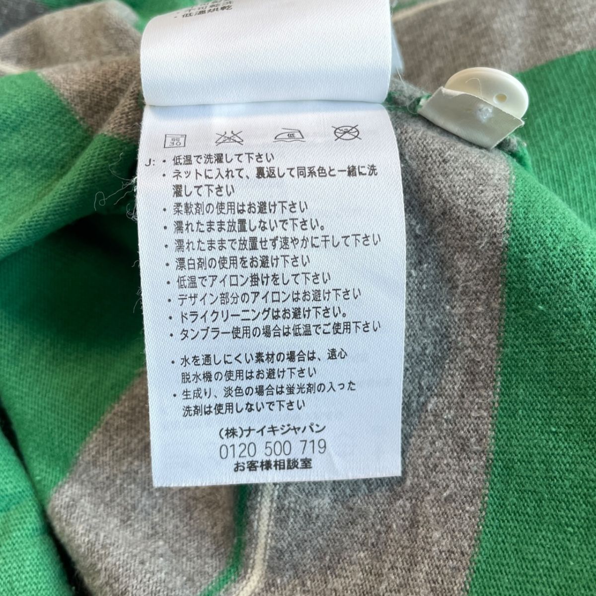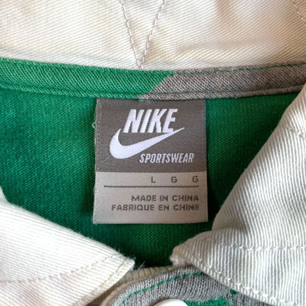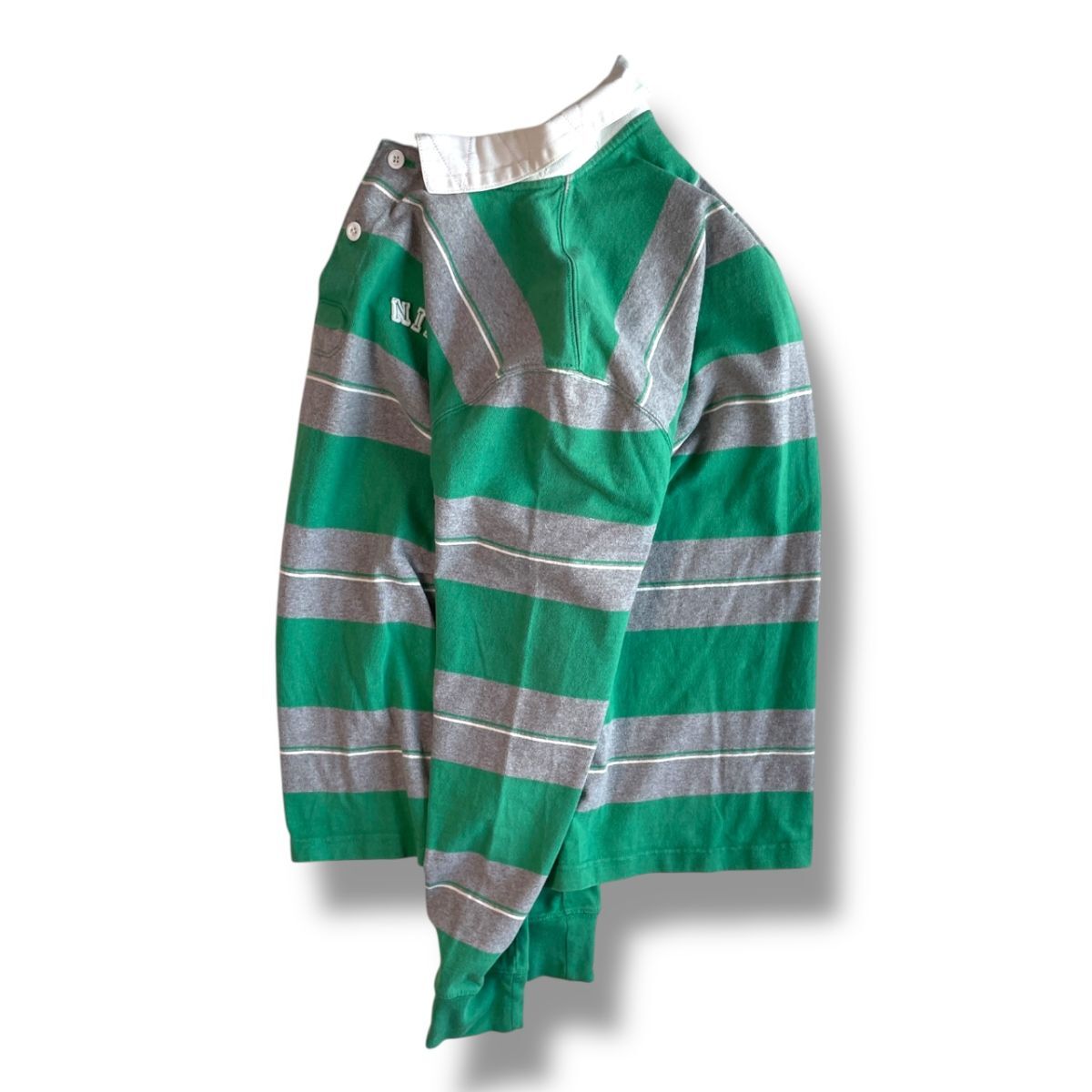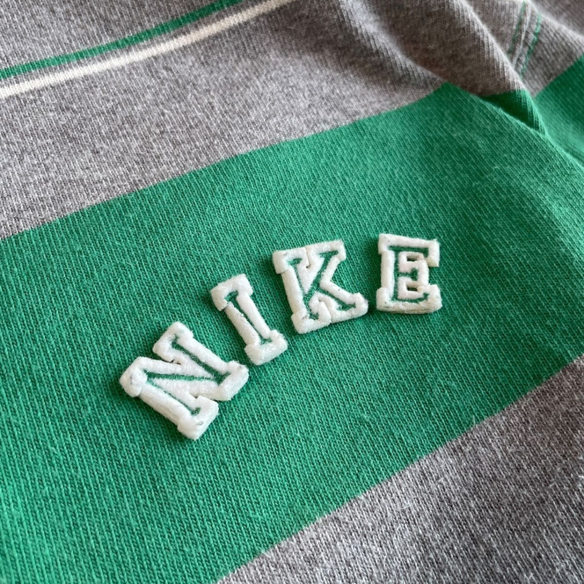 国内正規★ NIKE ナイキ 長袖 ボーダー フェルトロゴ ヘヴィーウェイト ポロシャツ Lサイズ 緑 グレー ラガーシャツ 古着 トップス