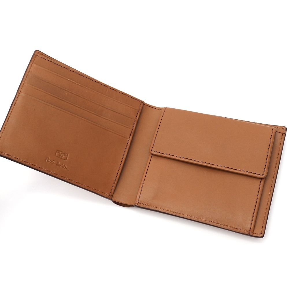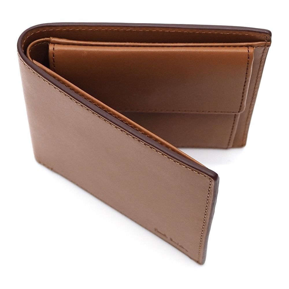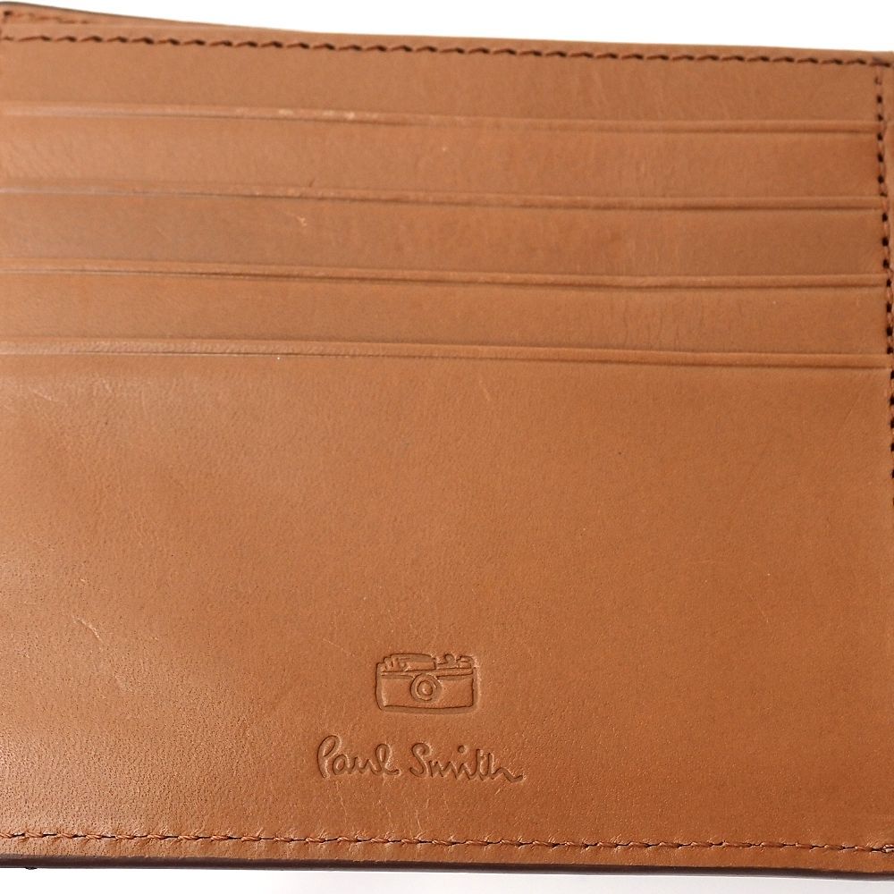 G06227 未使用品 Paul Smith/ベジタンストライプトリム レザーウォレット 2つ折り財布 ダークブラウン BPS633 ポールスミス メンズ