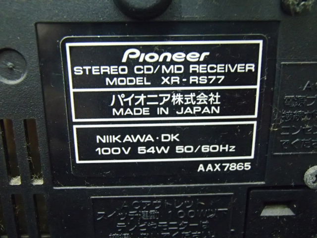 | #71622【中古品】Pioneer パイオニア XR-RS77 本体 CD MDミニコンポ スピーカー S-RS77-LR | ||