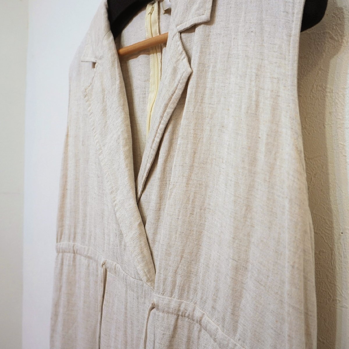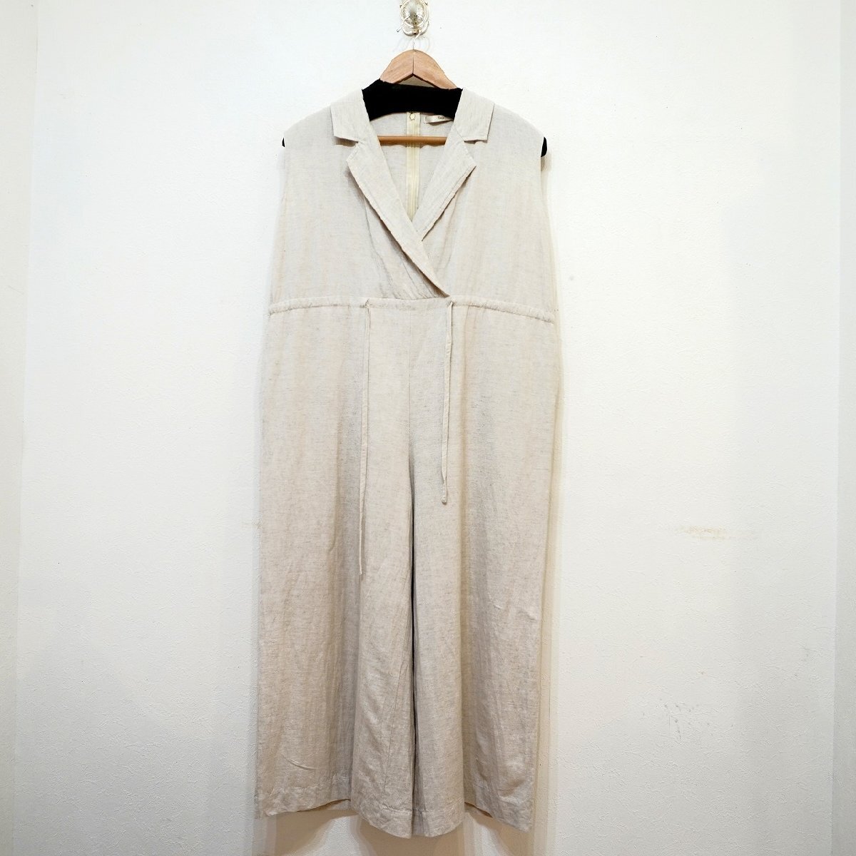 crisp (F) テーラードオールインワン c2R2650 リネンコットン ノースリーブロンパース キナリ J8-97