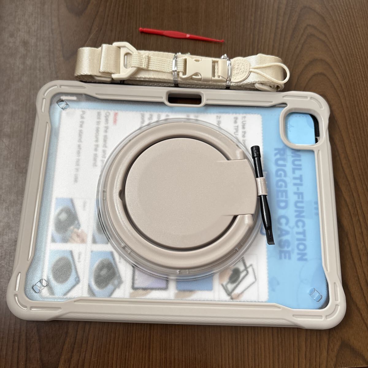 360°回転 iPad Air 11インチ 2025/2024ケース 回転リング iPad Air4/iPad Air5 /iPad Pro11 半透明ケース 肩掛け iPad Air 11 M3/M2 背面カバー 調節可能 ショルダーストラップ付き 薄型 軽量 ペンホルダー付き