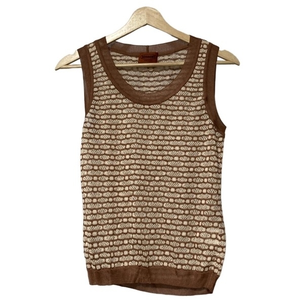 ミッソーニ MISSONI ノースリーブカットソー サイズ42 M - ブラウン×ベージュ レディース クルーネック 美品 トップス