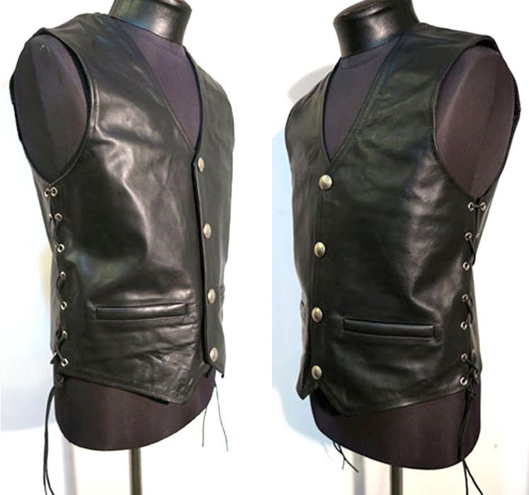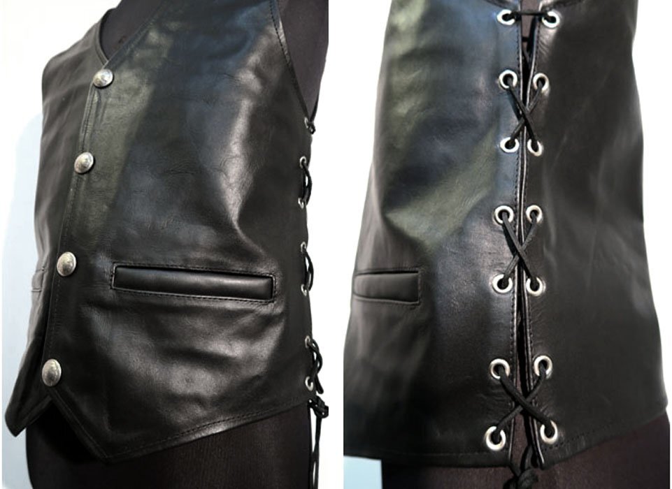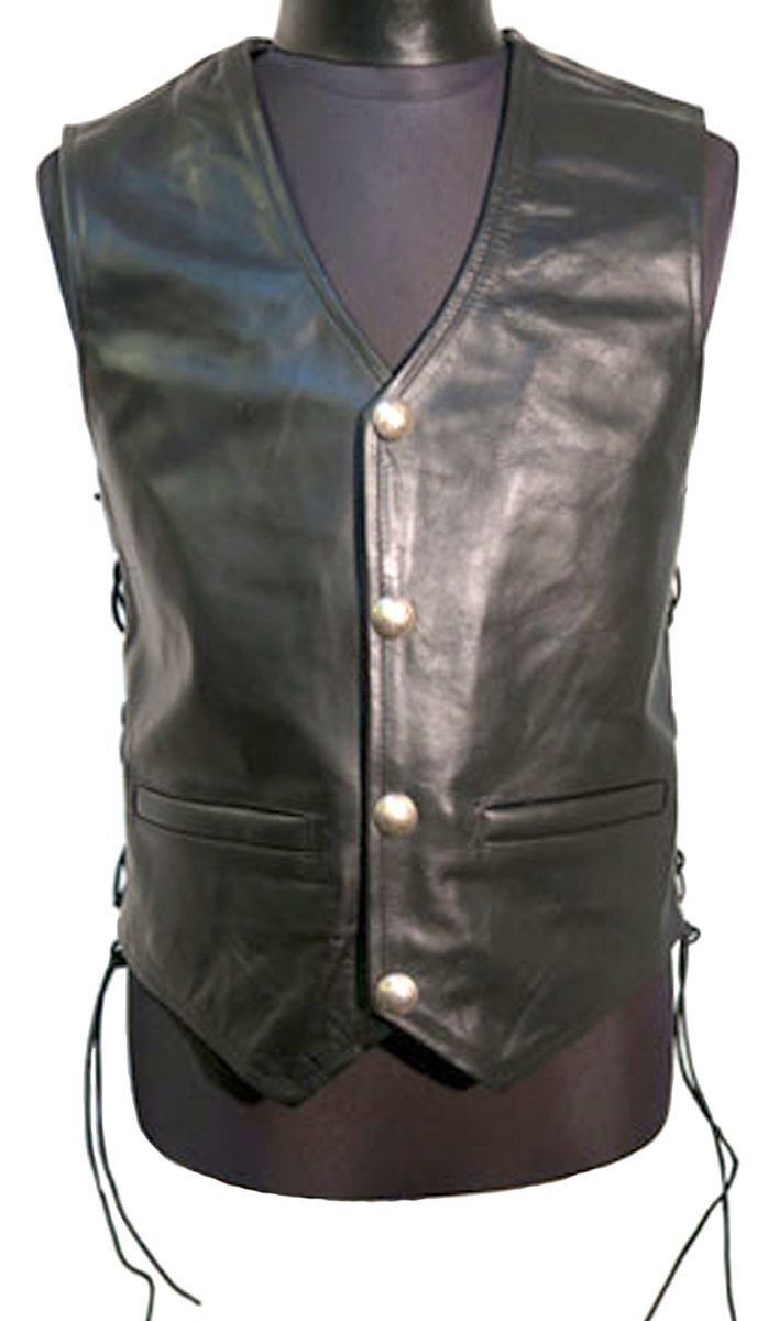 Mサイズ 本革 ベスト レースアップ インディアンコンチョ 3976 黒 ブラック BLACK 牛革 ウエスタン カウボーイ アメリカン ハーレー