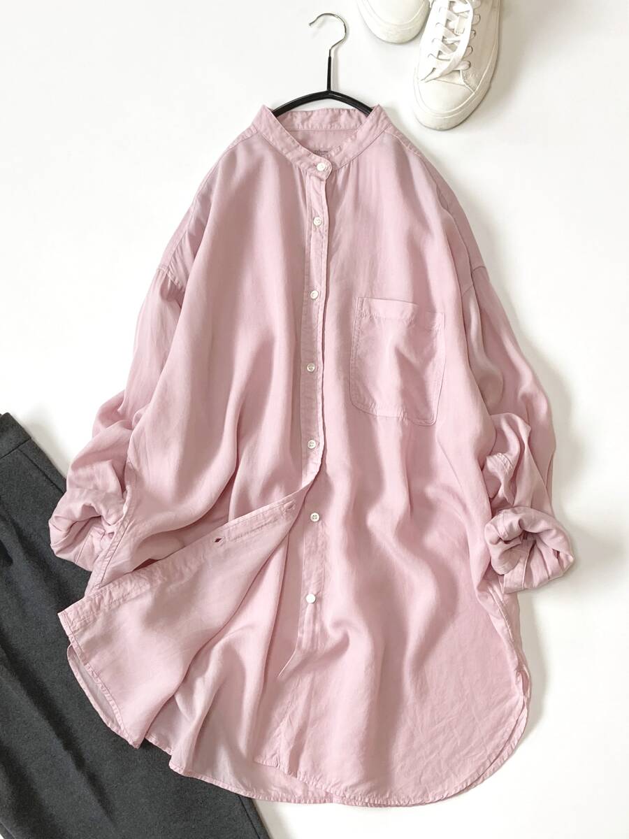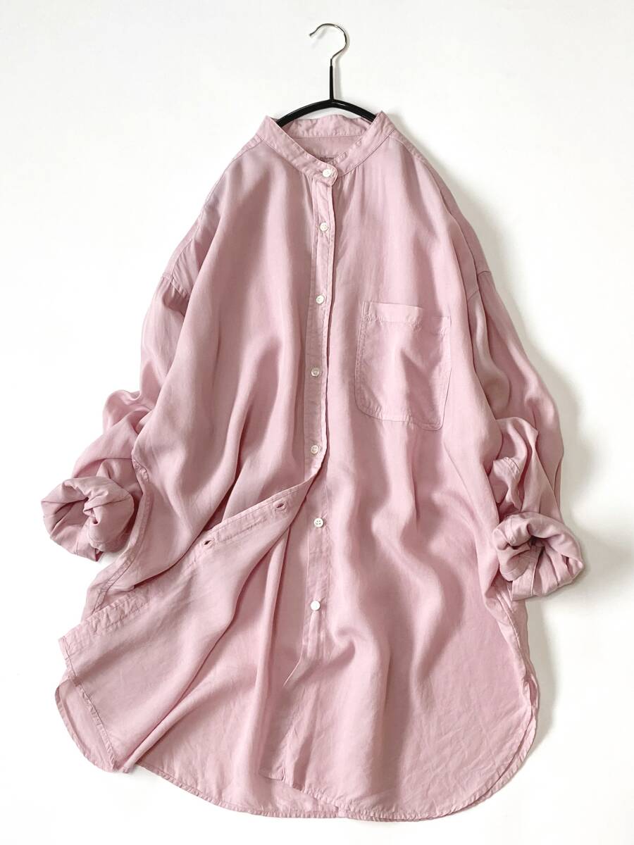 美品  JOURNAL STANDARD relume  ジャーナルスタンダードレリューム  ピンク  リヨセル製品染めバンドカラーシャツ