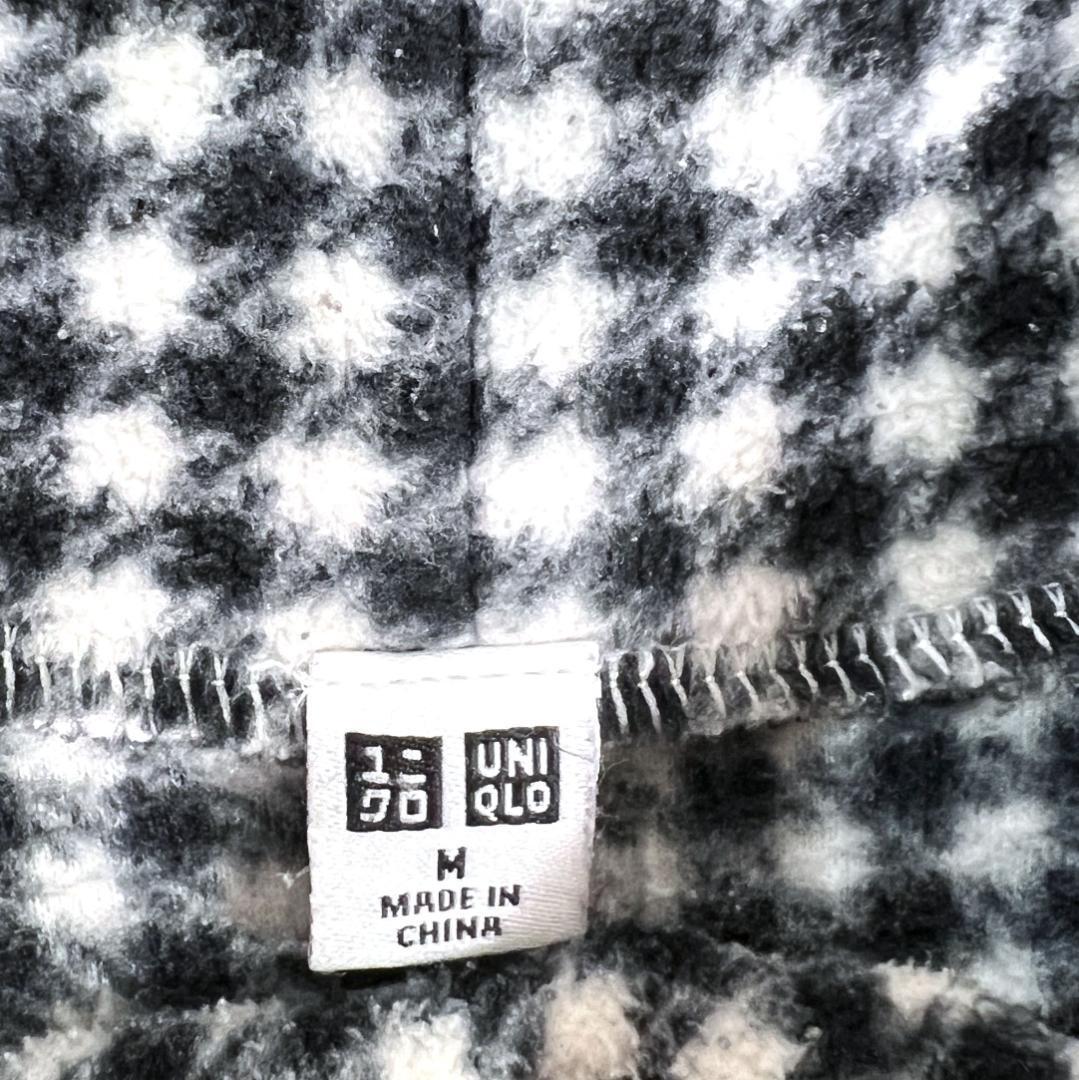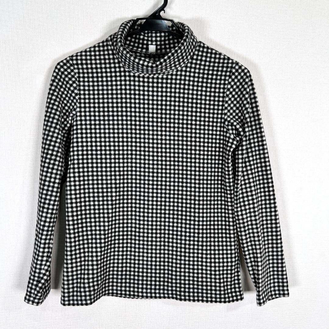 【UNIQLO】ユニクロ ブラック×ホワイト チェック ニットセーター ハイネック タートルネック 長袖 レディース Mサイズ【a006】