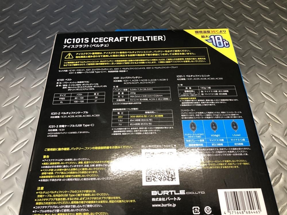 バートル BURTLE ■商品名 氷冷ペルチェベスト ■型番 IC101S |