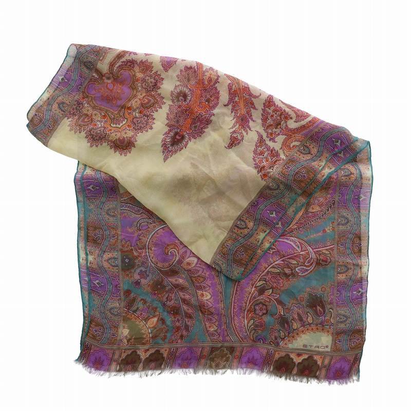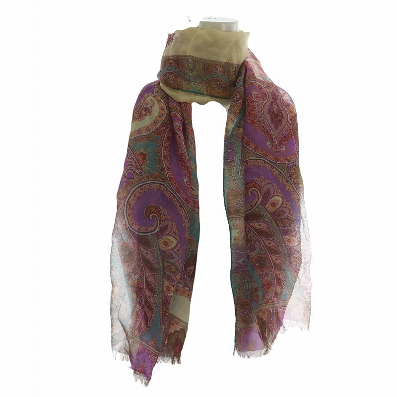 エトロ ETRO スカーフ ストール 薄手 ペイズリー柄 総柄 フリンジ ロゴ 紫 パープル /XZ ■GY18 レディース