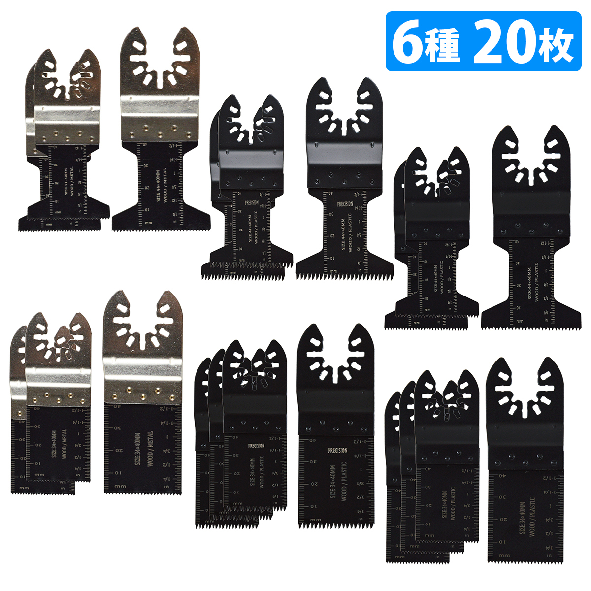 【送料無料】6種 20枚セット マルチツール ブレード カットソー 金属/木材/プラ 替刃 日立 ボッシュ マキタ ハイコーキ 替え刃 互換品
